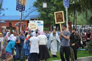 По окончании Божественной литургии был совершен крестный ход на источник, освященный в честь празднуемого образа и чин малого освящения воды.