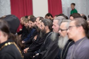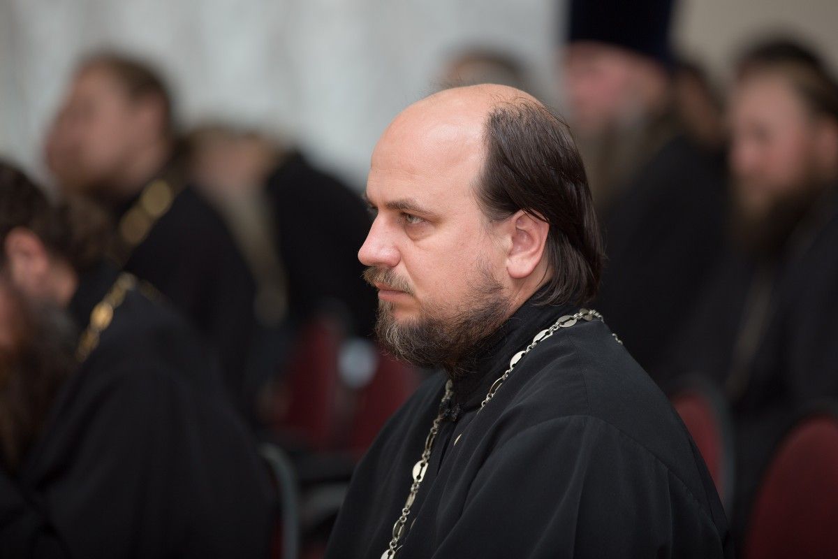 После совместного богослужения в соборе Благовещения Пресвятой Богородицы и крестного хода к Успенскому храму, священнослужители и представители приходов собрались в конференц-зале Православного центра.