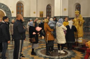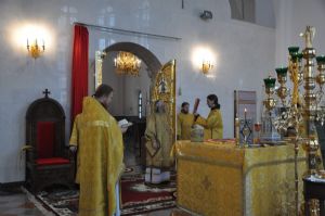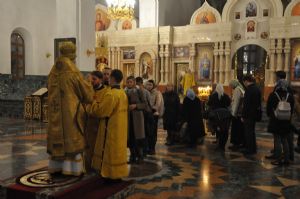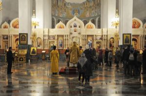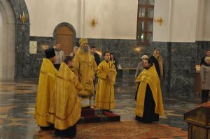За богослужениями Владыке сослужили: ключарь собора протоиерей Сергий Поглазов, клирики собора иерей Никифор Захаров и Артемий Промович, диаконы Андрей Дружинин и Игорь Коваль, клирик храма Рождества Пресвятой Богородицы протодиакон Михаил Козловский.