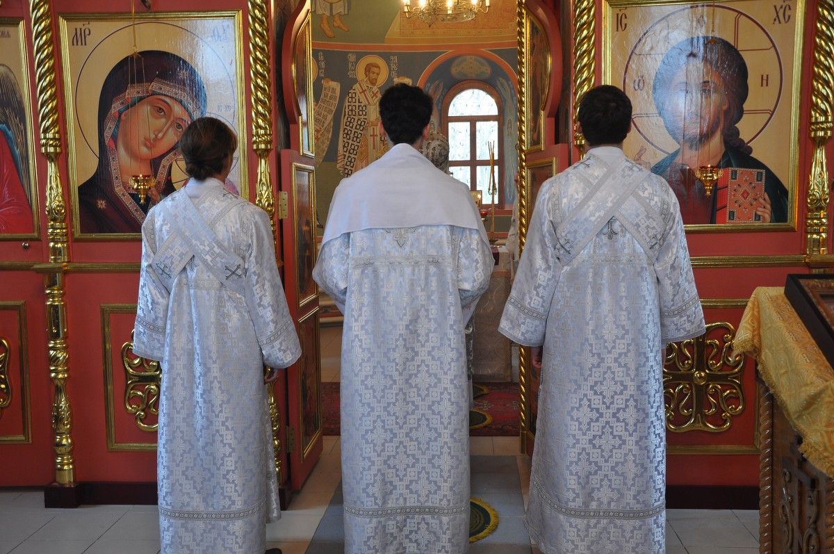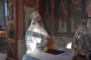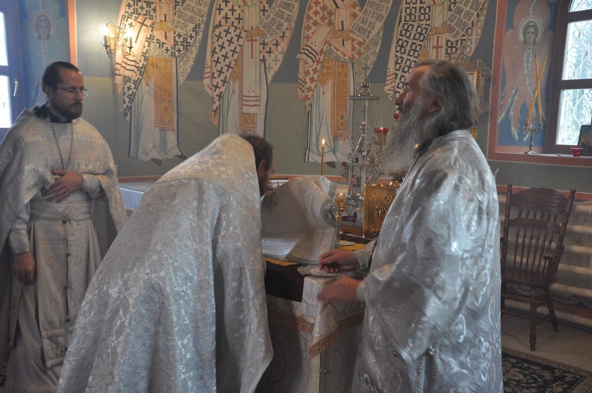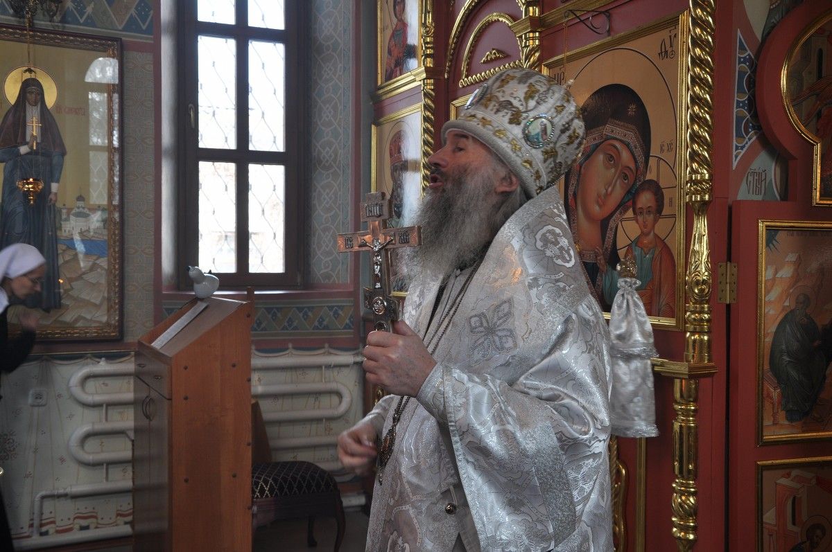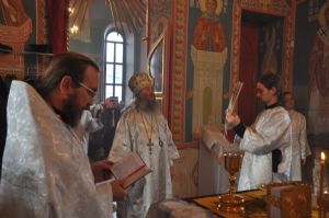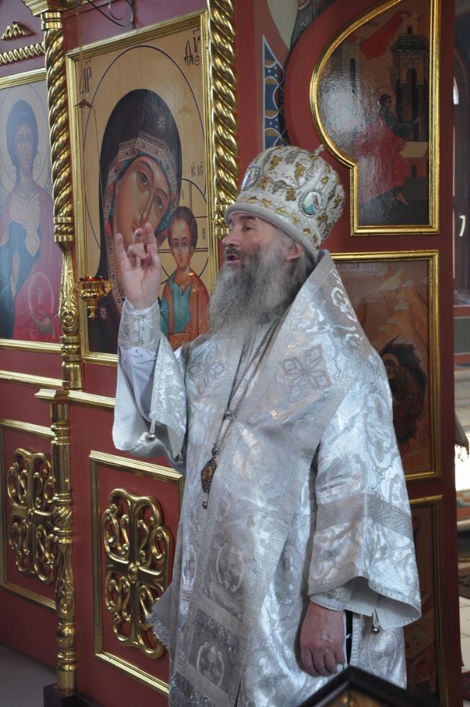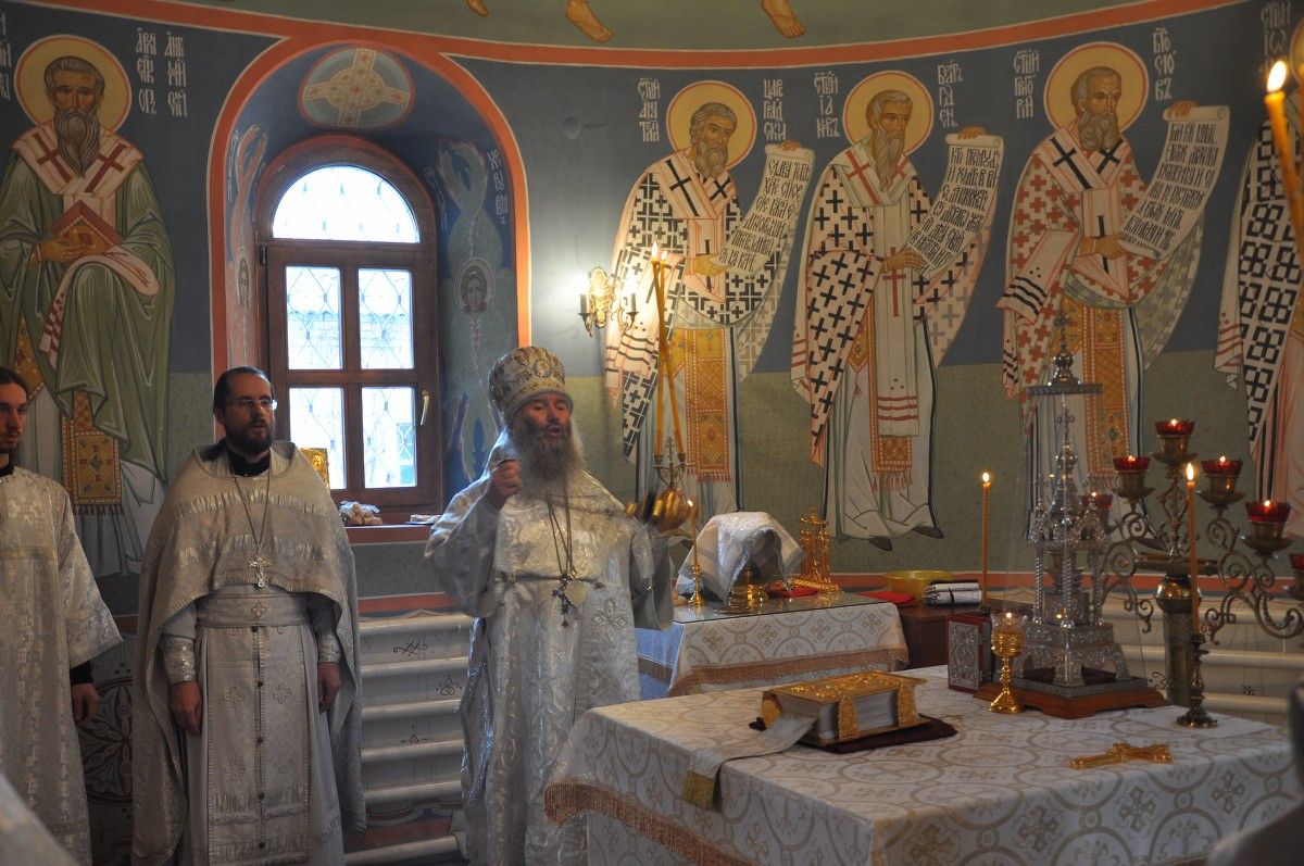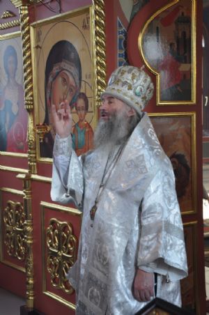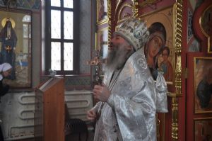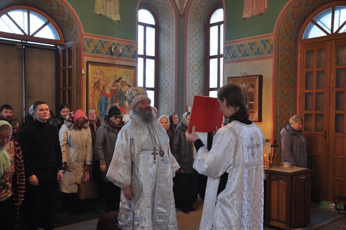 Владыке сослужили: секретарь епархиального управления иеромонах Серафим (Пасанаев) и иерей Григорий Михалев клирик храма «Рождества Пресвятой Богородицы» в с. Семеновка.