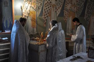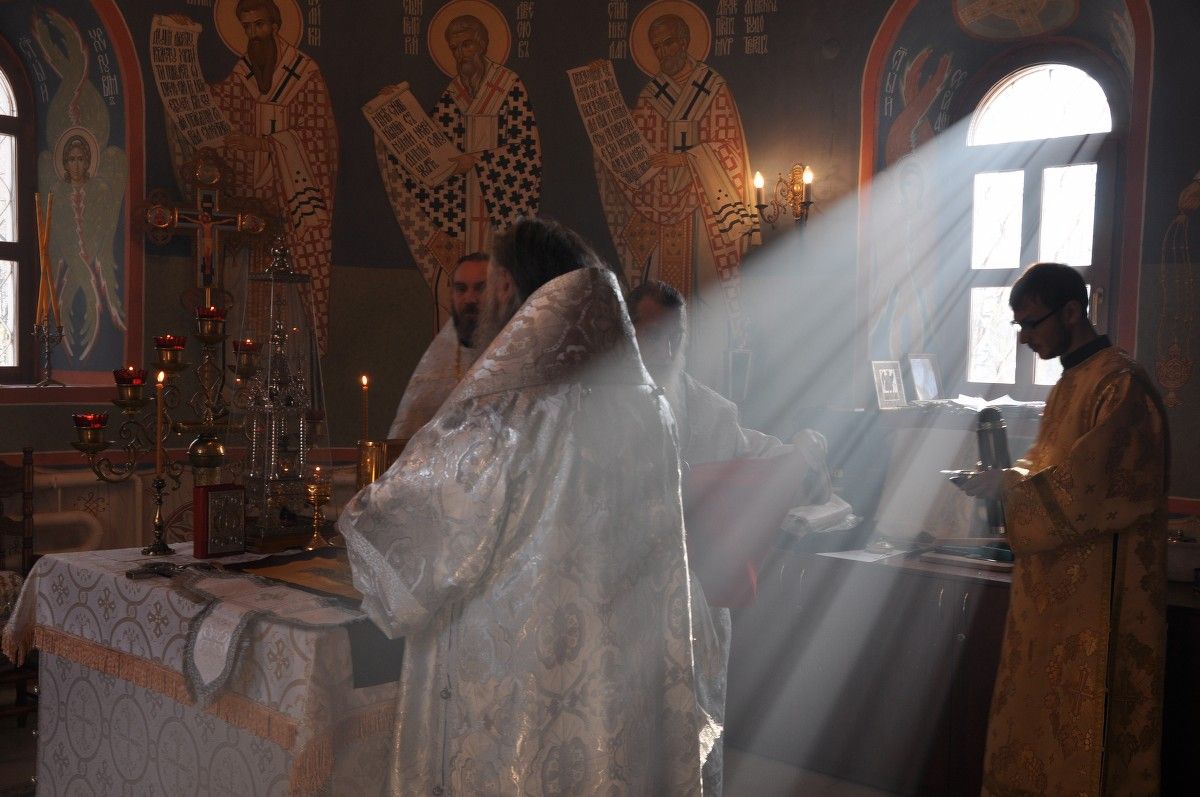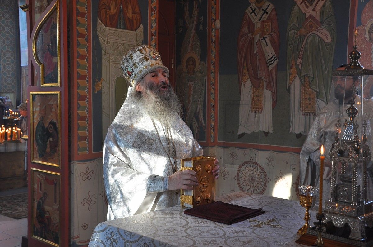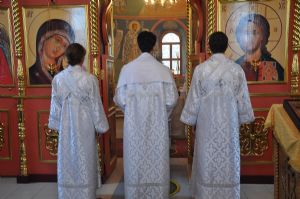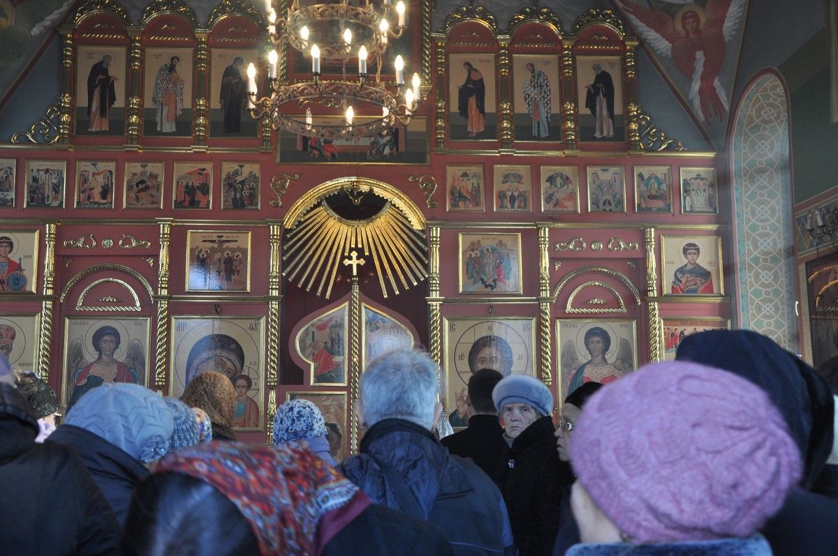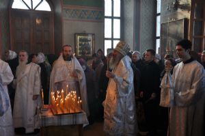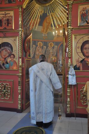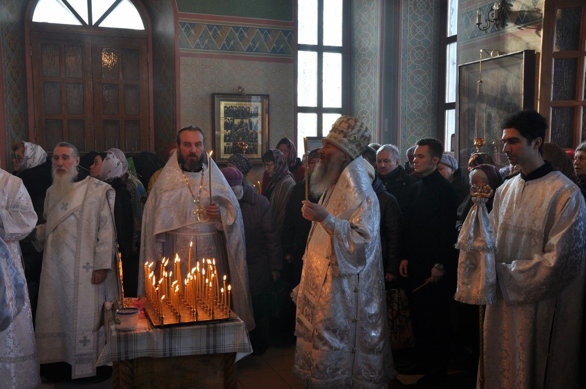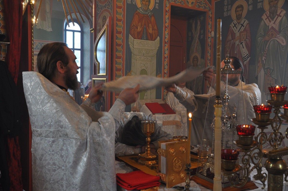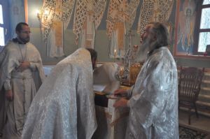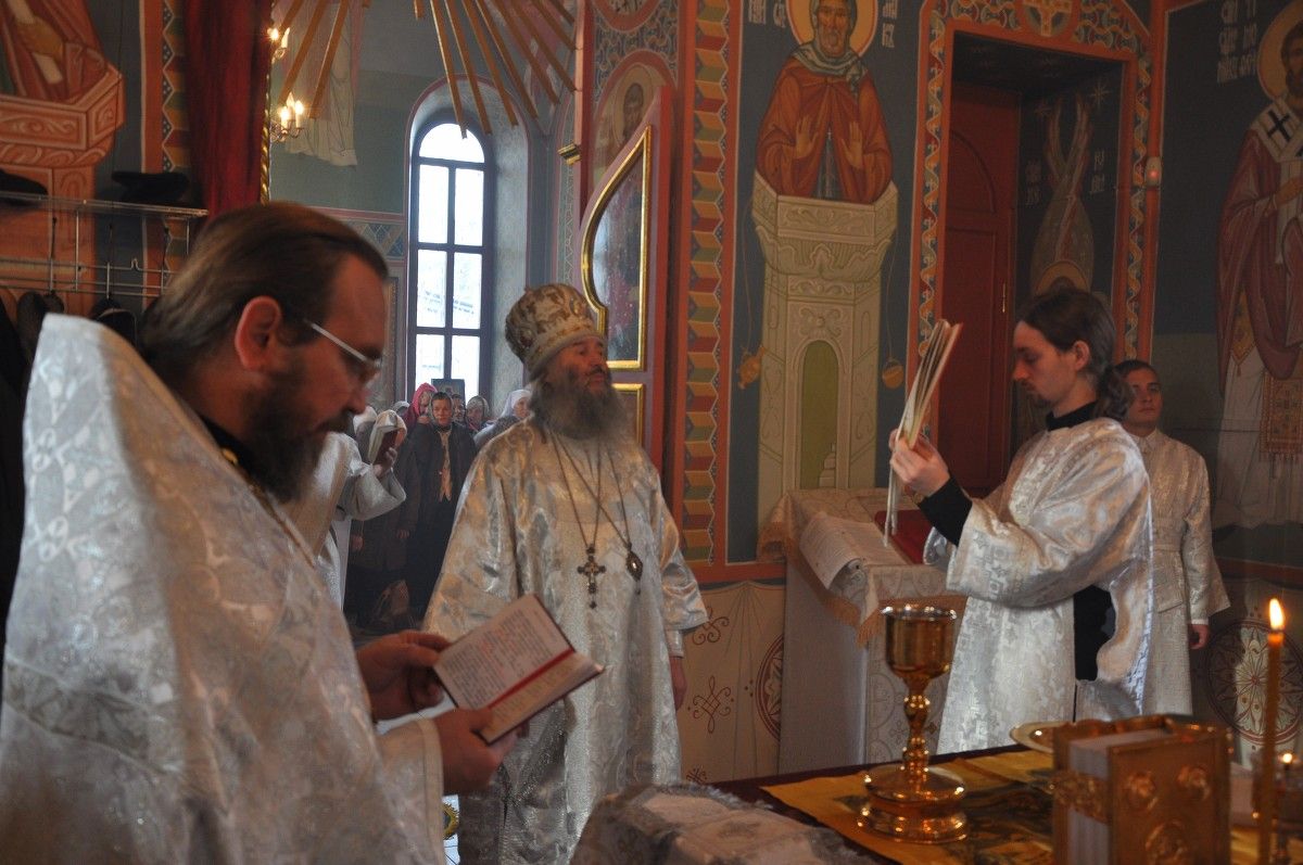 Владыке сослужили: секретарь епархиального управления иеромонах Серафим (Пасанаев) и иерей Григорий Михалев клирик храма «Рождества Пресвятой Богородицы» в с. Семеновка.