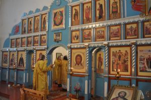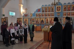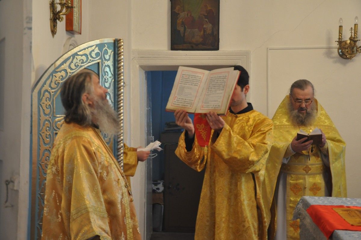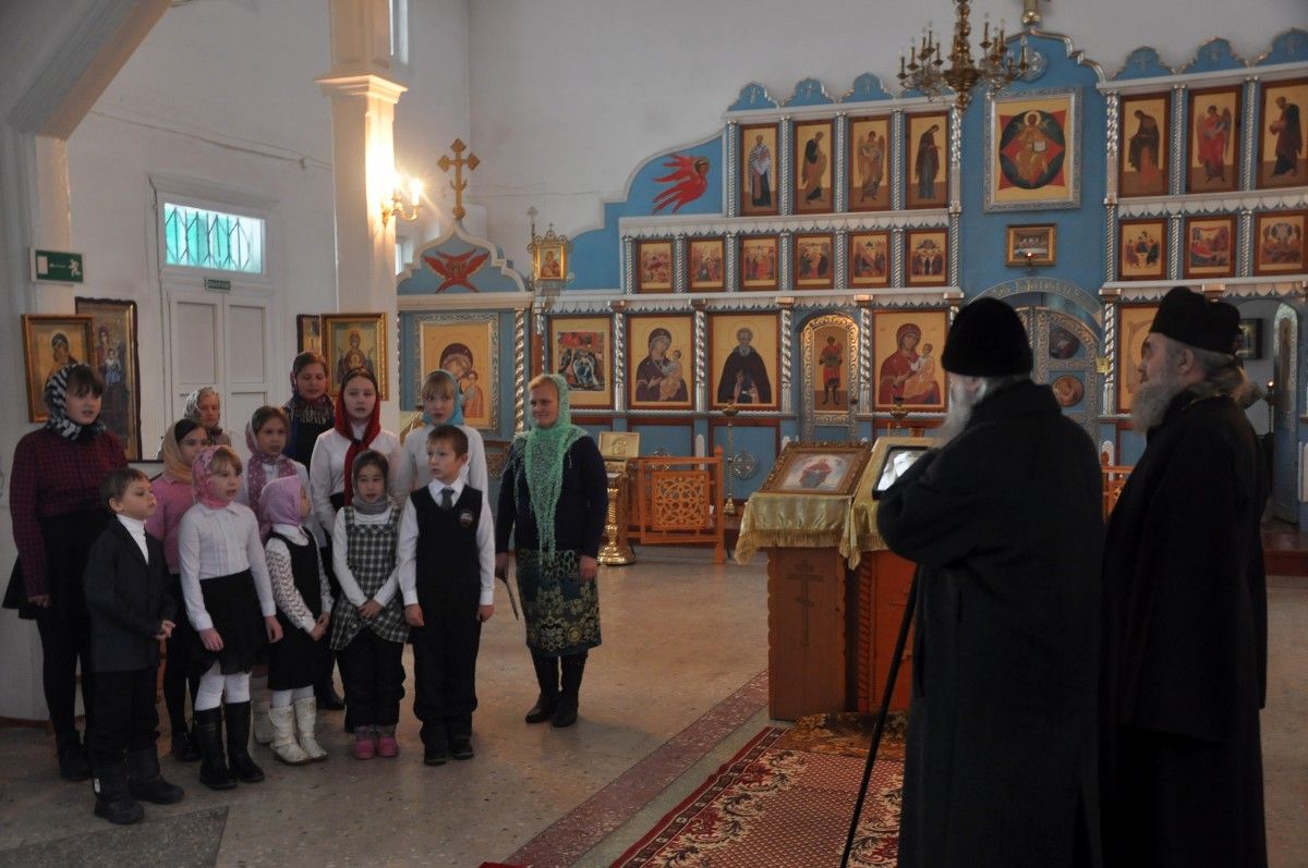 За богослужением Владыке сослужили секретарь епархии иеромонах Серафим (Пасанаев) и настоятель чкаринского храма протоиерей Валентин Пылаев.
