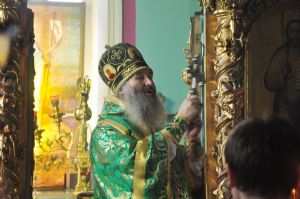 Богослужение началось торжественной встречей архиерея. После Литургии был отслужен молебен святым Косме и Дамиану. В своей проповеди Владыка говорил об особом подвиге святых чудотворцев. Господь молитвами и заступлением этих святых приводит больных людей к покаянию в грехах, терпению болезней и исцелению.