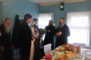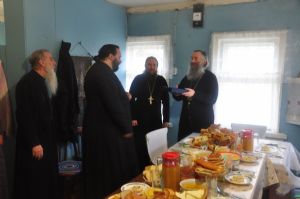 За трапезой протоиерей Алексий Сущев от лица священства Горномарийского церковного округа преподнес в дар Владыке крест и панагию, в связи с возведением его в сан митрополита.
