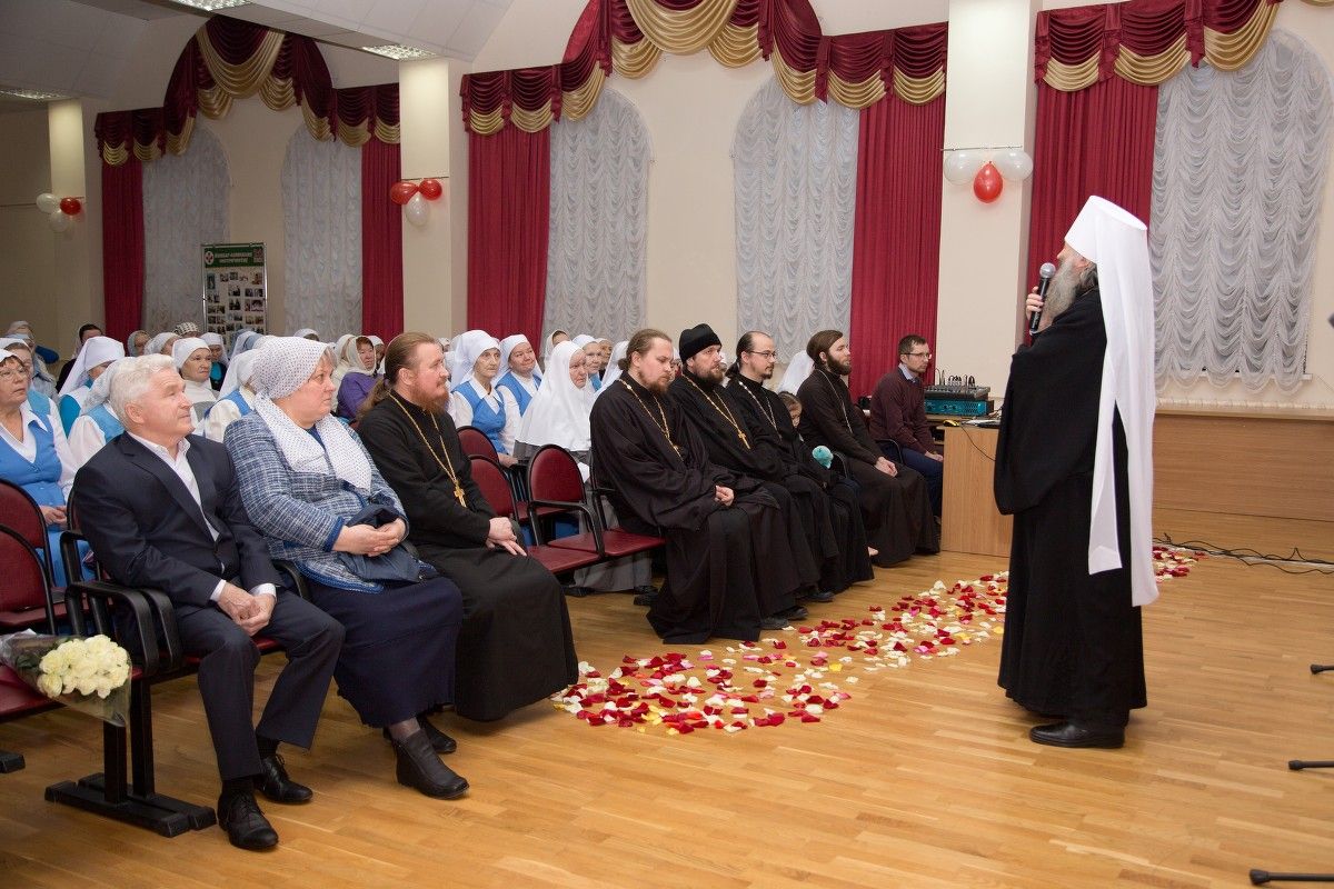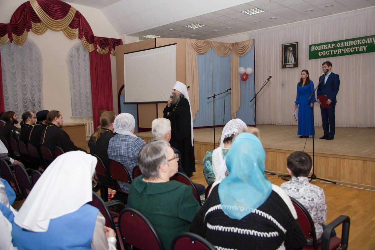 В домовом храме преподобномученицы Елисаветы был совершен молебен святой покровительнице сестричества. Торжественная часть началась с приветствия Его Высокопреосвященства митрополита Йошкар-Олинского и Марийского Иоанна: