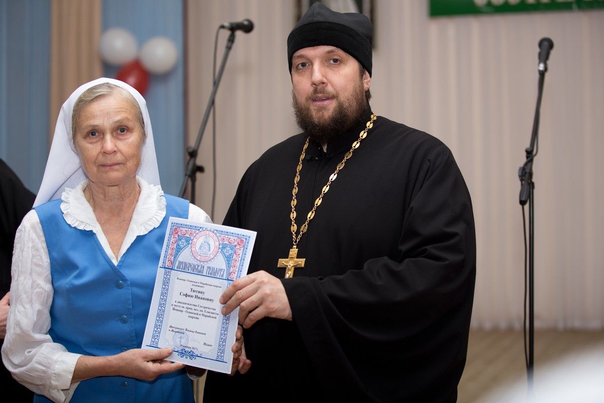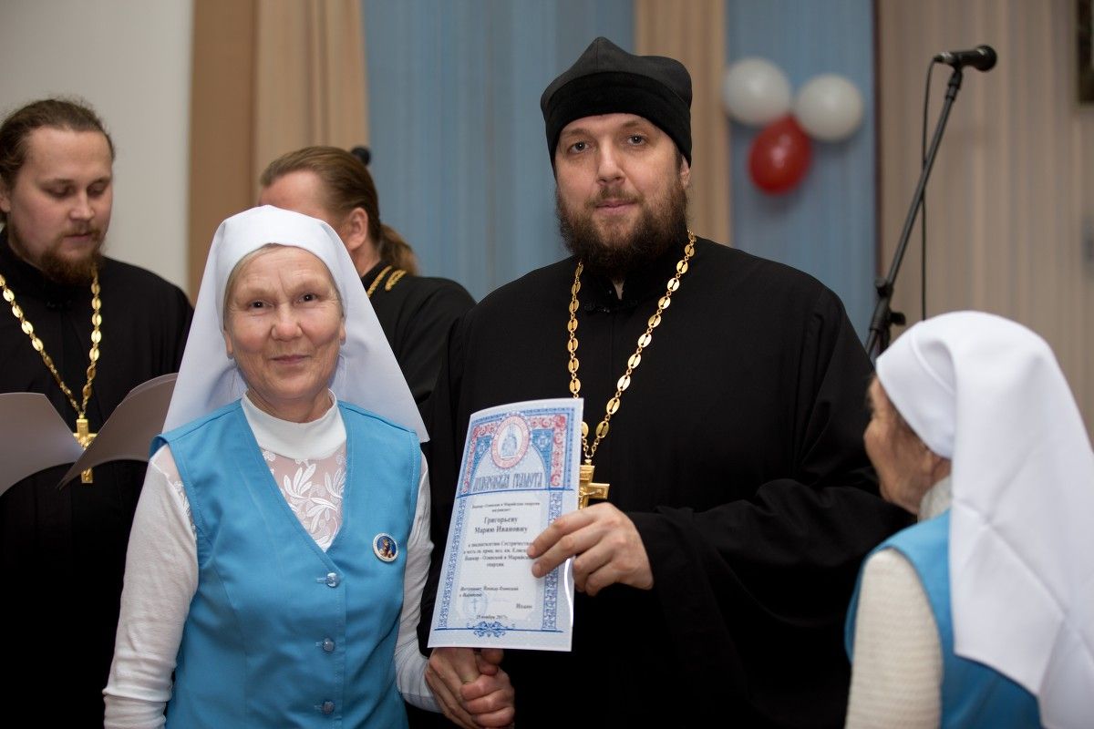 Концертную программу украсили творческие подарки заслуженного артиста России Ивана Смирнова, заслуженных артисток Республики Марий Эл Любови Купсольцевой и Марины Почтеневой, представителей коллектива Марийского национального театра драмы им. М. Шкетана Алексея Тетерина, Ивана Соловьева, Александра Михайлова. Сами сестры милосердия тоже порадовали зрителей: со сцены прозвучали стихи и песни в их исполнении. Заслуженная артистка России Галина Ямаева, тоже сестра милосердия, рассказала поучительную притчу с хитринкой «Наговорная водичка» (автор – Г. Хмелев).