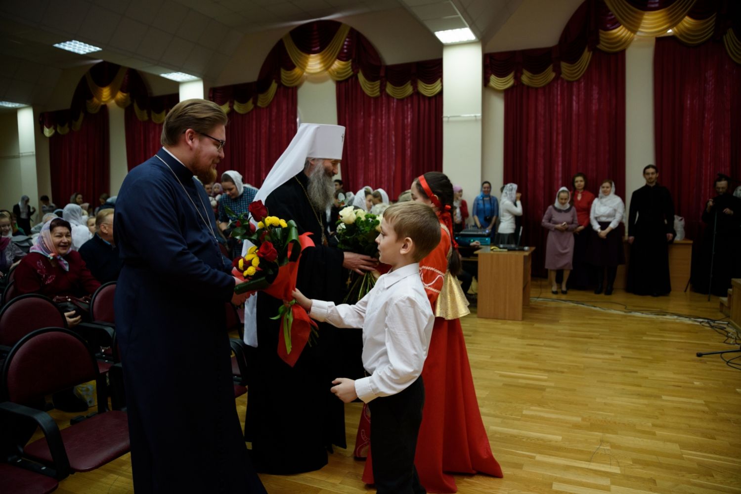 Вечером того же дня здесь состоялся еще один концерт. Выступали воспитанники воскресной школы при детско-юношеском хоре «Благовест». Разделить радость праздника с учащимися школы так же пришли родители, преподавали и владыка Иоанн.