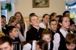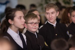 В 14.00 участники Благотворительного марафона - представители фонда «Время помогать», артисты из Чувашии и специальный гость Данил Плужников - посетили православную гимназию преподобного Сергия Радонежского г. Йошкар-Олы.