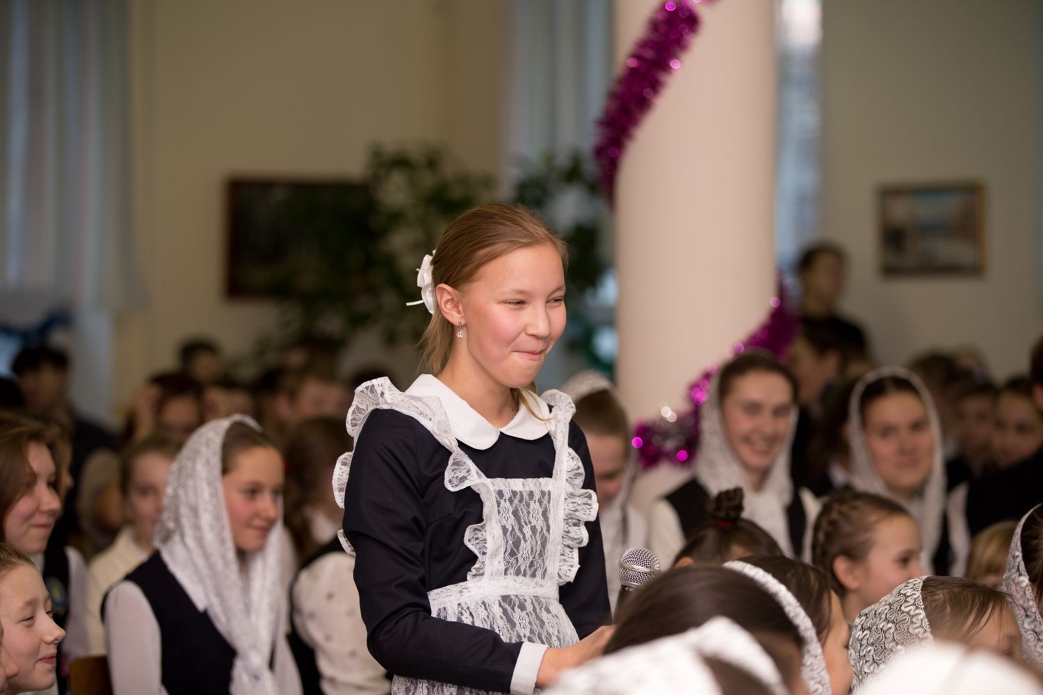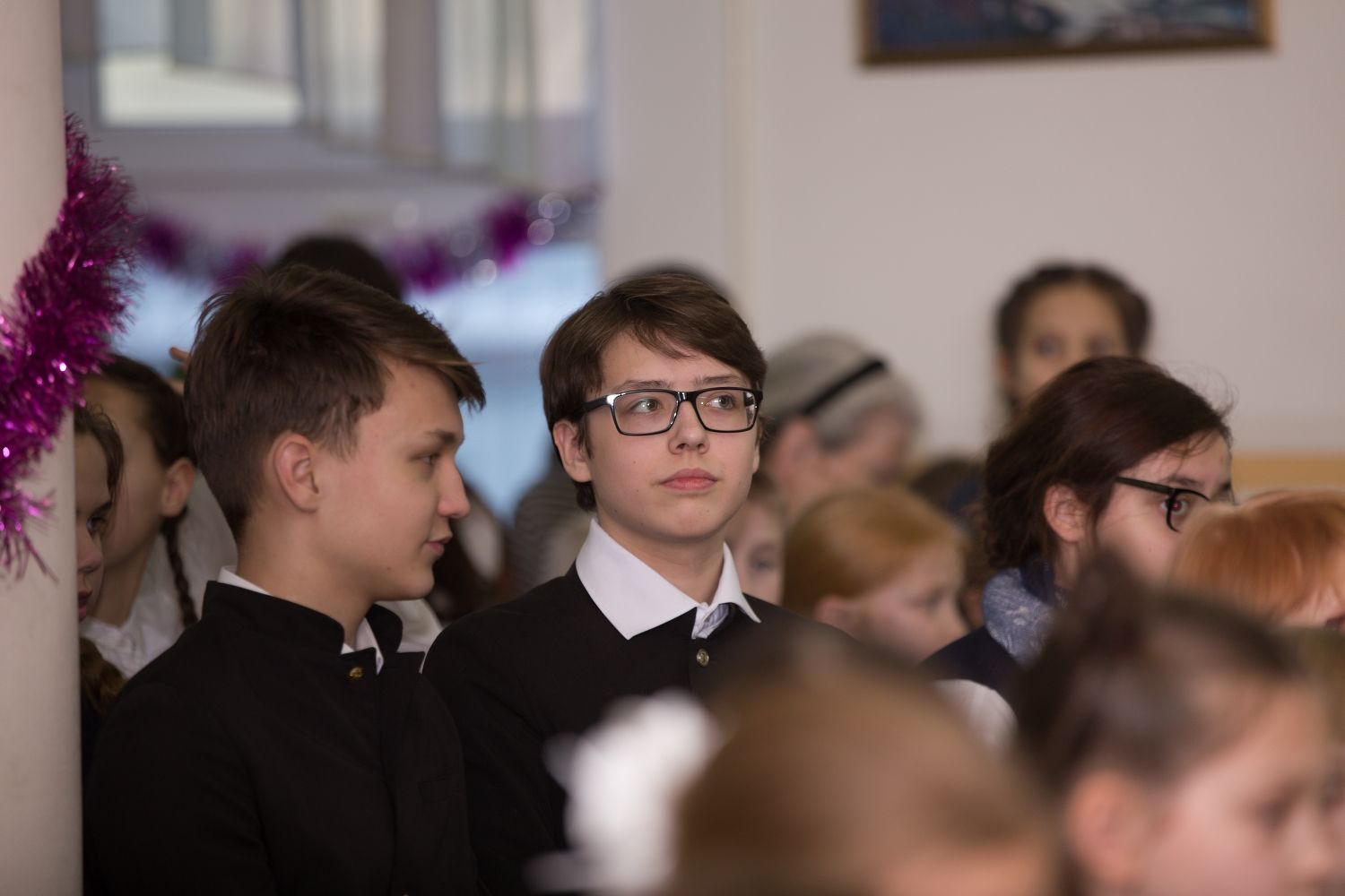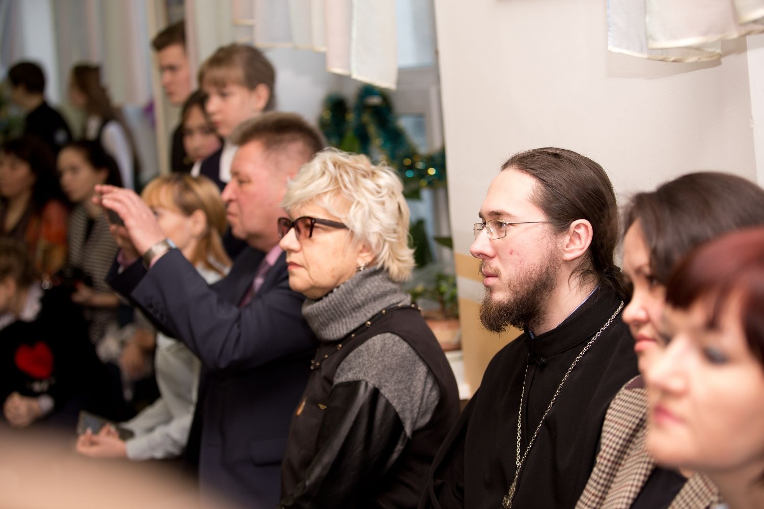 Приветствовал гостей директор гимназии, настоятель храма святой мученицы Татианы при ПГТУ протоиерей Евгений Сурков. Учащиеся гимназии и архиерейский хор «Благовест», под управлением регента Татьяны Черновой подготовили гостям небольшой концерт, приуроченный празднованию праздника Рождества Христова.