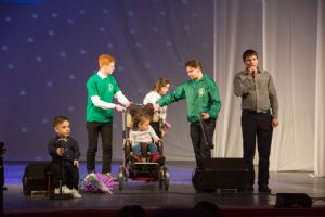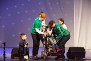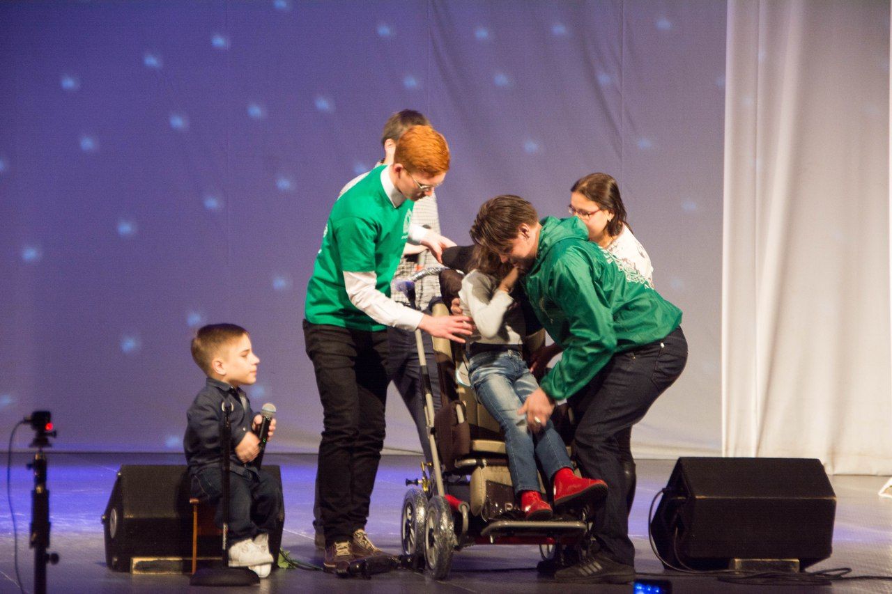В заключение концертной программы руководитель фонда «Время помогать» Александр Валерьевич Ефимов рассказал, что на прошлом концерте был объявлен сбор средств на инвалидную коляску для девочки из Марий Эл Тимофеевой Дарьи. Благодаря добрым людям этот дорогой подарок был вручен Дарье и ее маме.