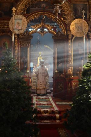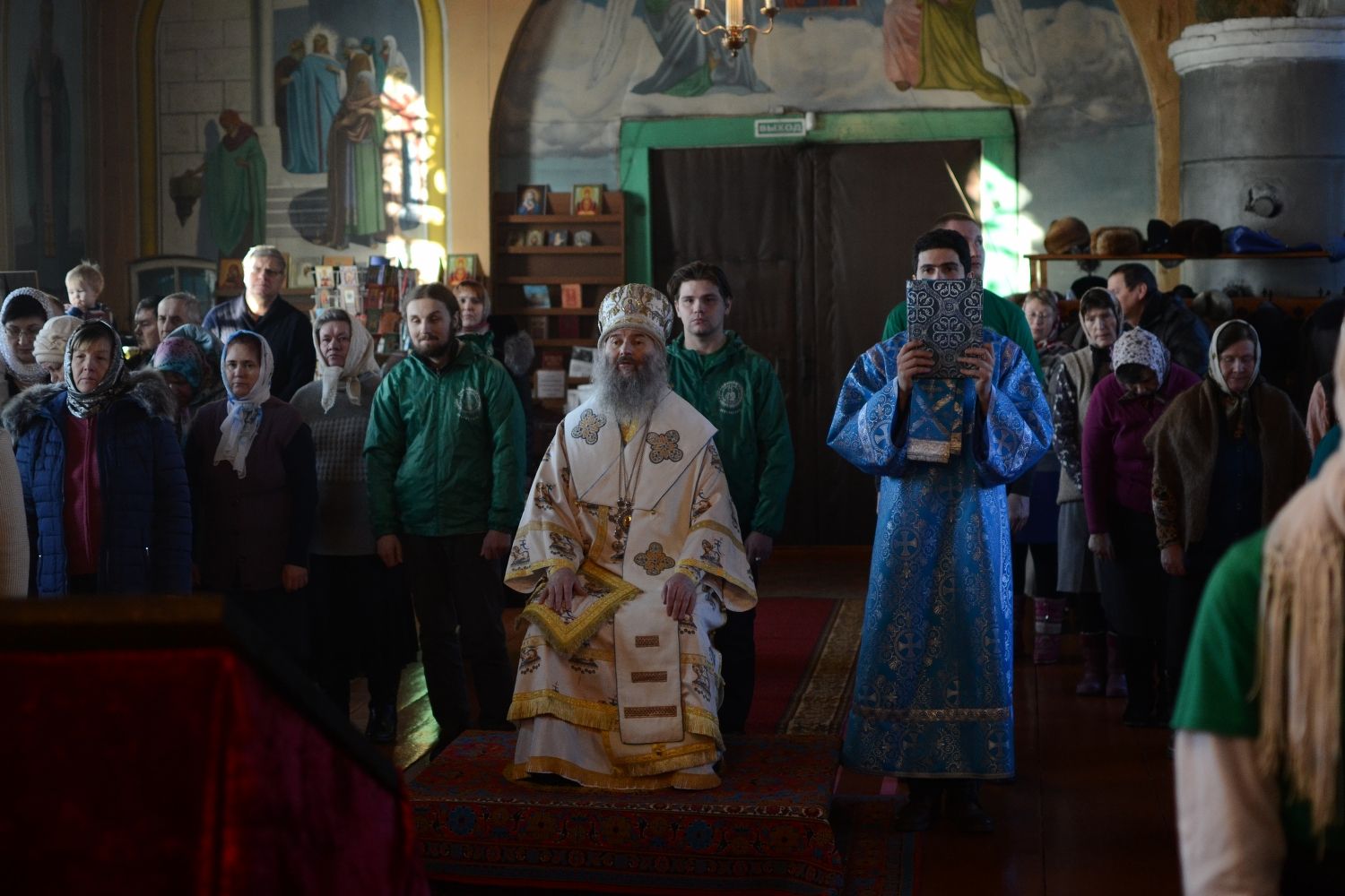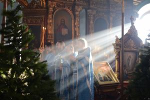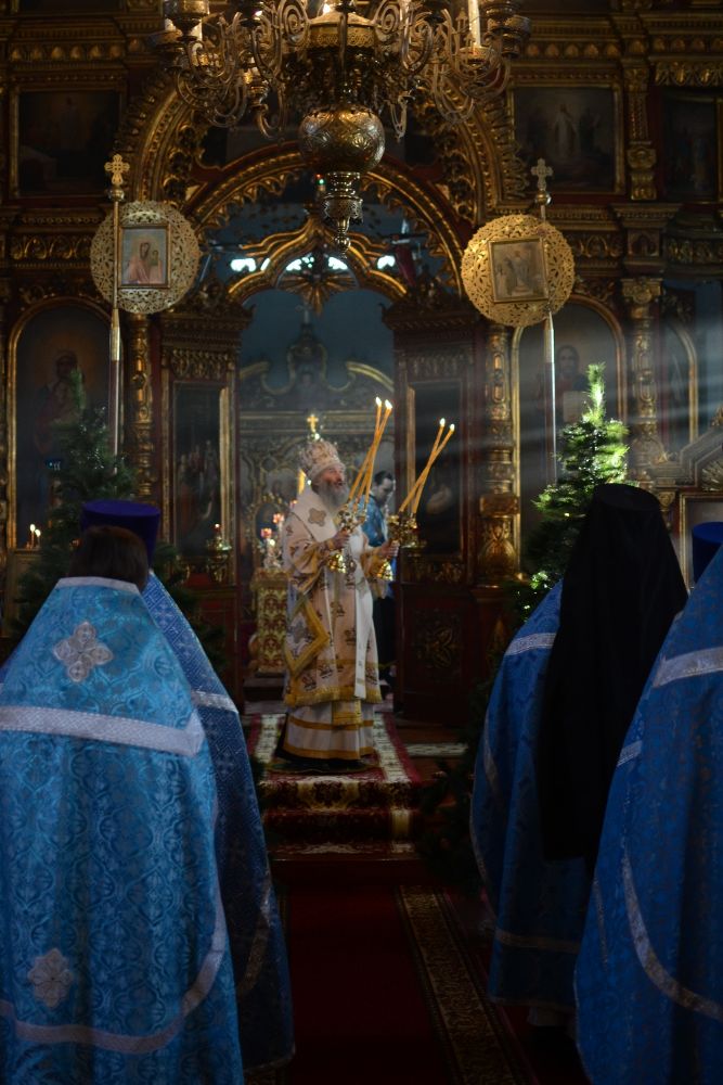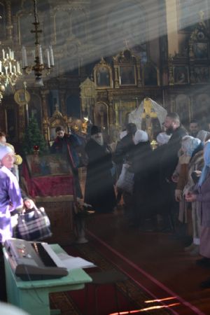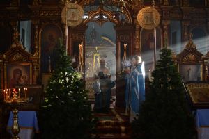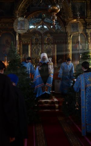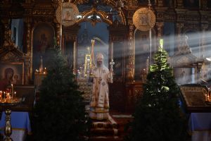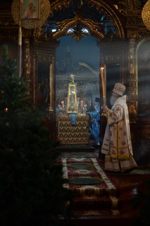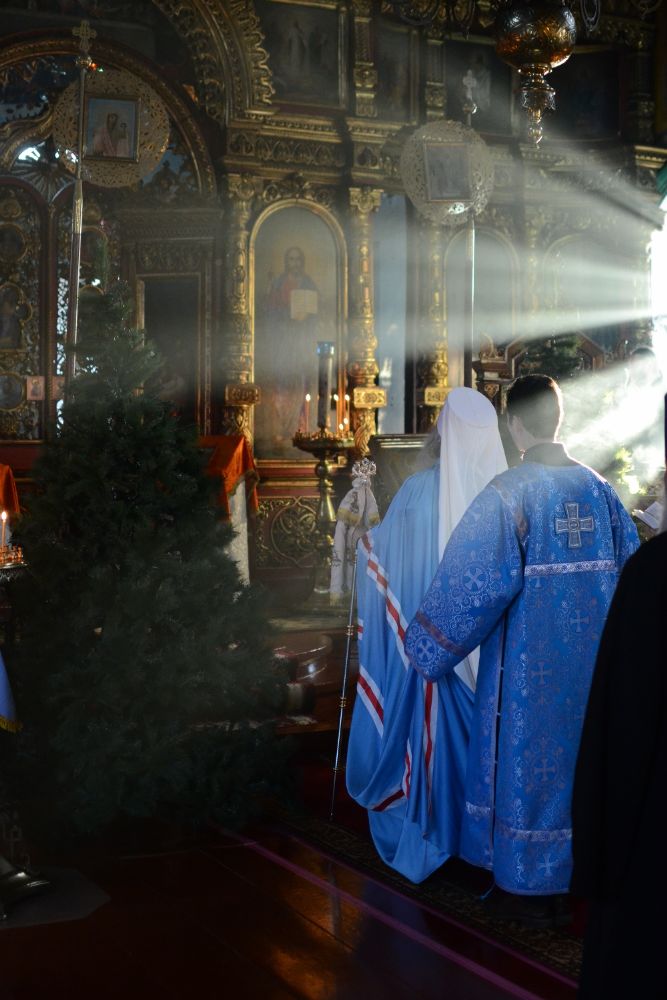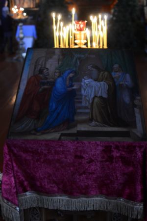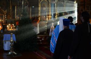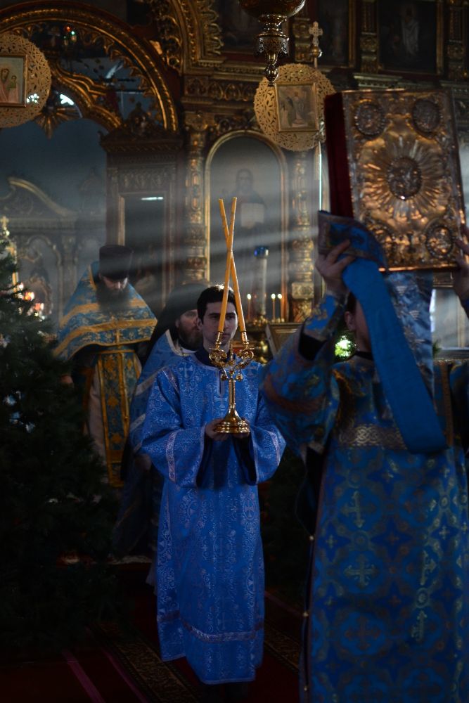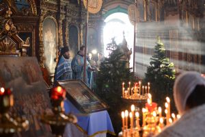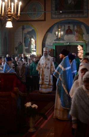 Богослужение началось торжественной встречей митрополита Иоанна. За литургией в честь праздника читались отрывки из послания к Евреям о Господе Иисусе - вечном священнике и из Евангелия от Луки о встрече младенца Иисуса в храме праведными Симеоном и Анной.