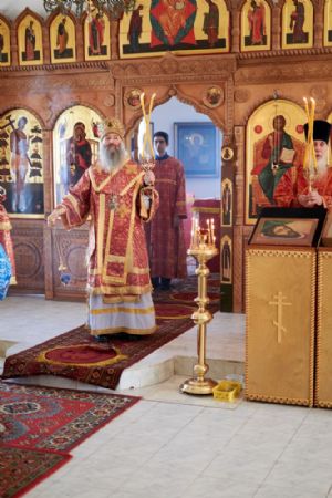 Владыке сослужили клирик монастыря иерей Михаил Лежнин и клирик храма Рождества Пресвятой Богородицы села Семеновка протодиакон Михаил Козловский.