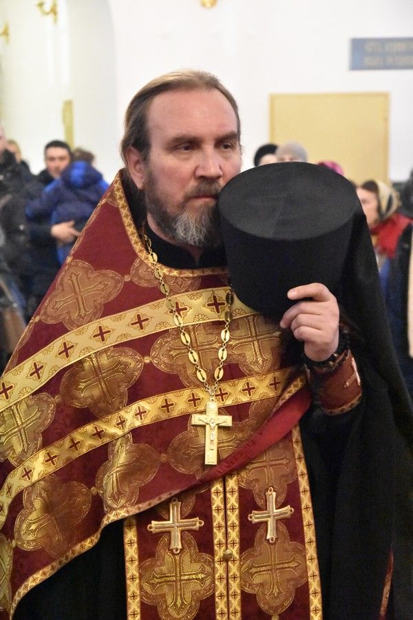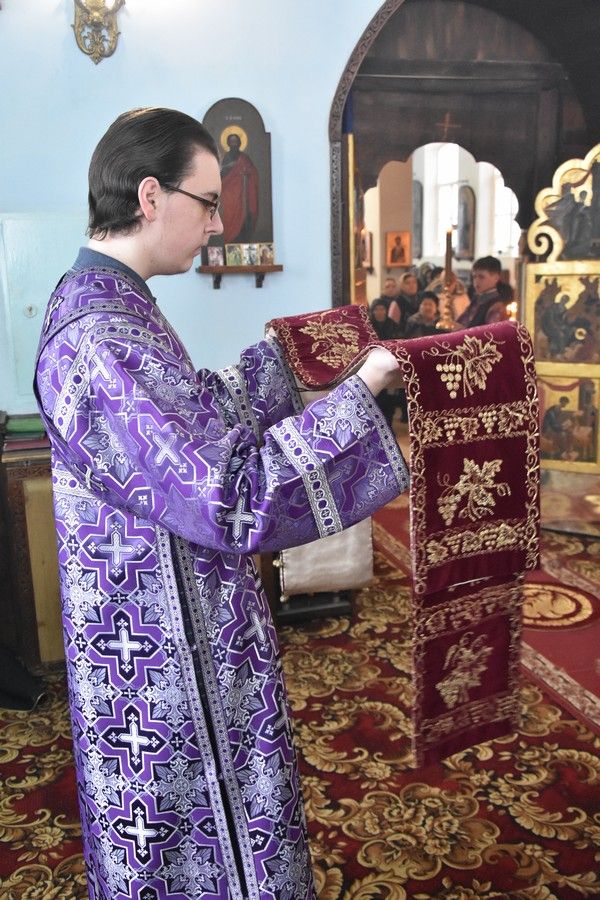 Владыке сослужили секретарь Епархиального управления иеромонах Серафим (Пасанаев), настоятель собора иерей Алексий Кирюшкин, клирик собора иерей Андрей Кочаков, клирик храма Рождества Пресвятой Богородицы села Семеновка протодиакон Михаил Козловский, диакон Алексий Кузнецов.