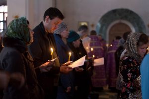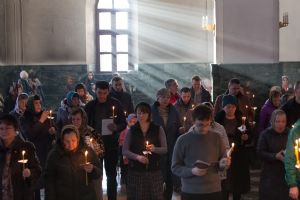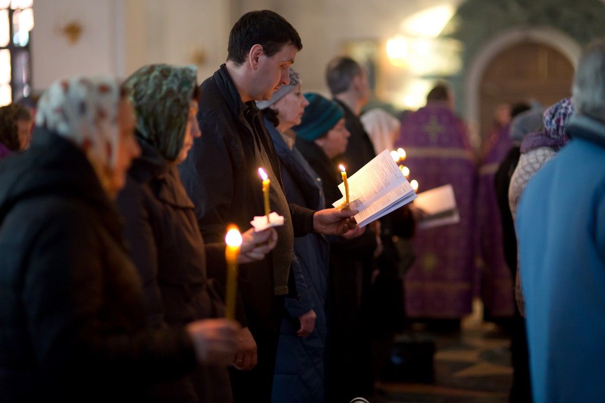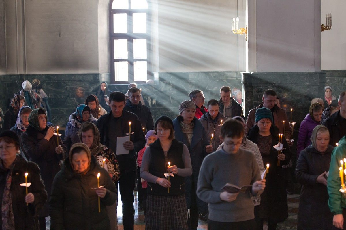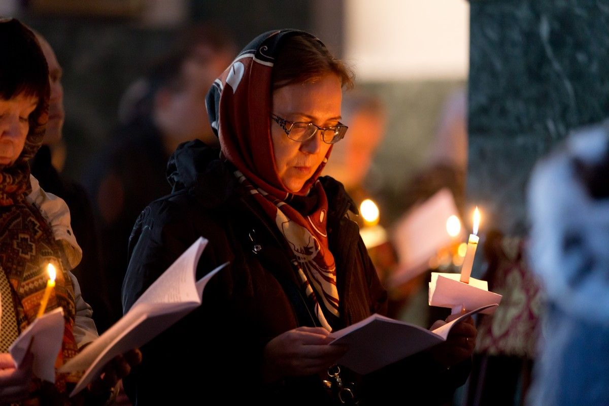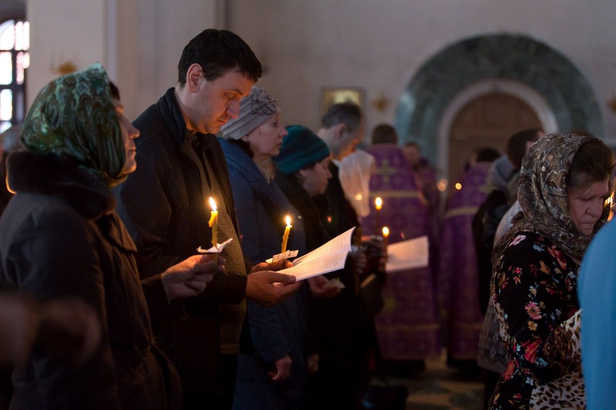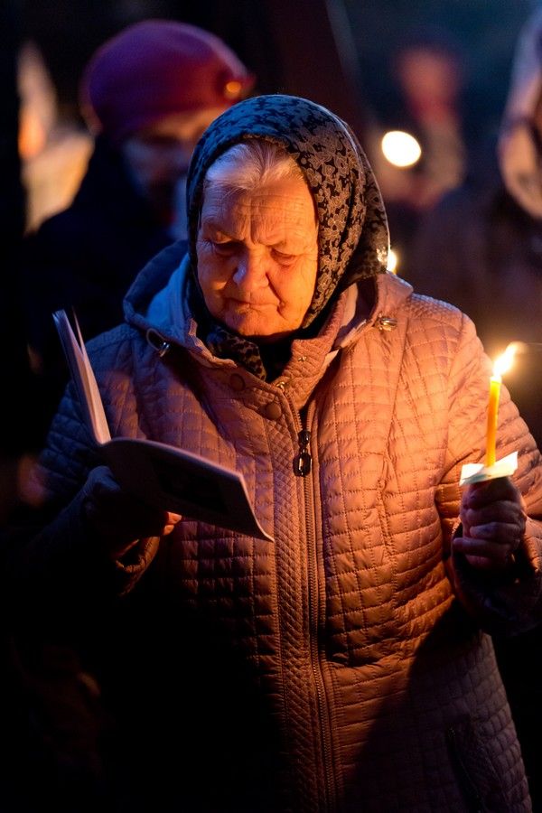Всем верующим на входе в храм были предложены книжечки с последованием утрени. Со свечами в руках, прихожане по тексту следили за ходом богослужения. Чтобы лучше понять и не пропустить не одного слова из этого скорбного богослужения.