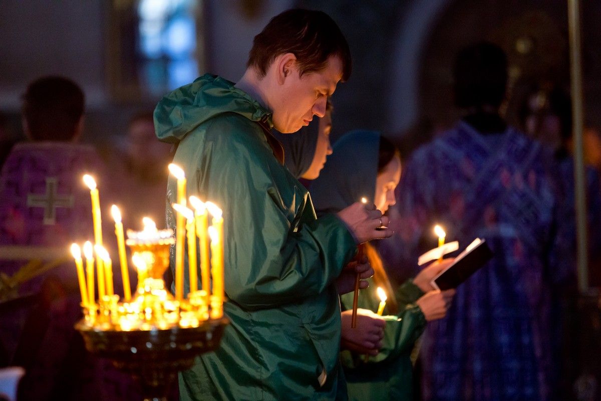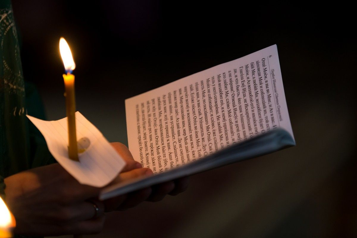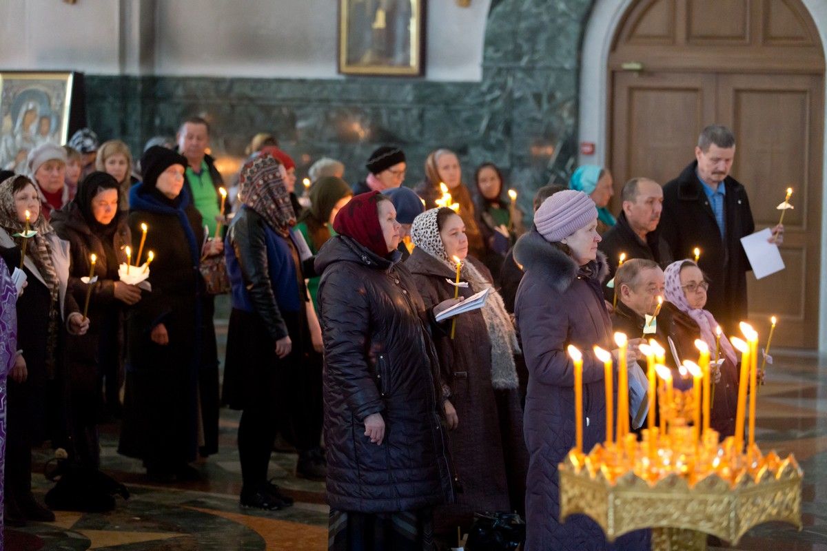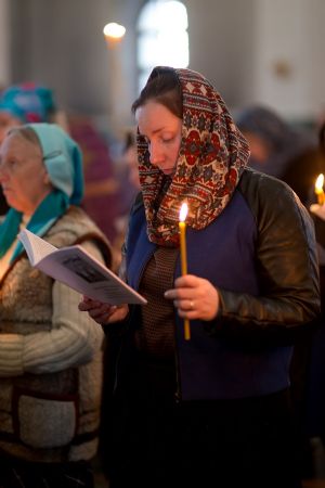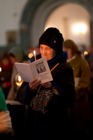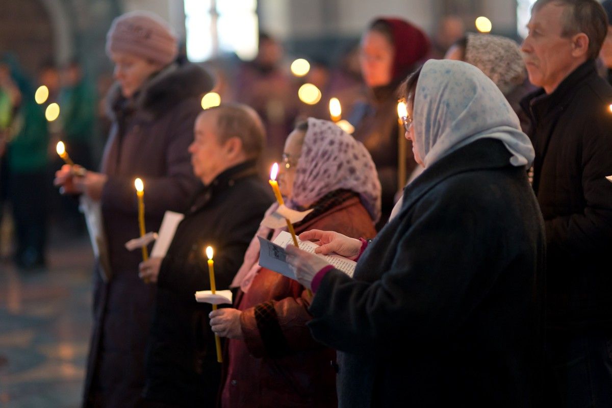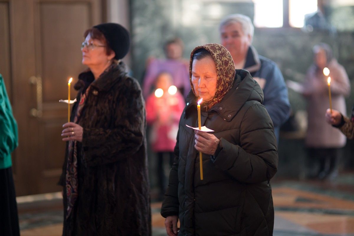 Всем верующим на входе в храм были предложены книжечки с последованием утрени. Со свечами в руках, прихожане по тексту следили за ходом богослужения. Чтобы лучше понять и не пропустить не одного слова из этого скорбного богослужения.