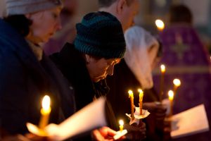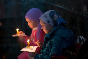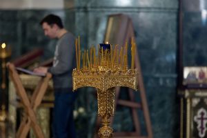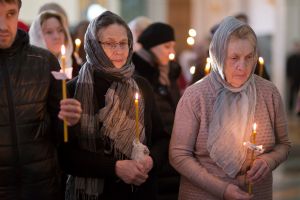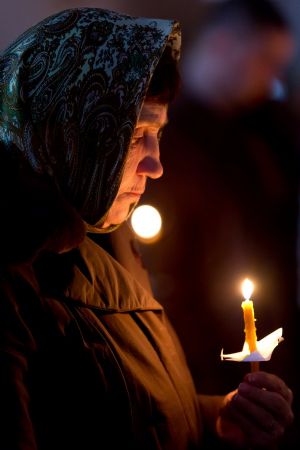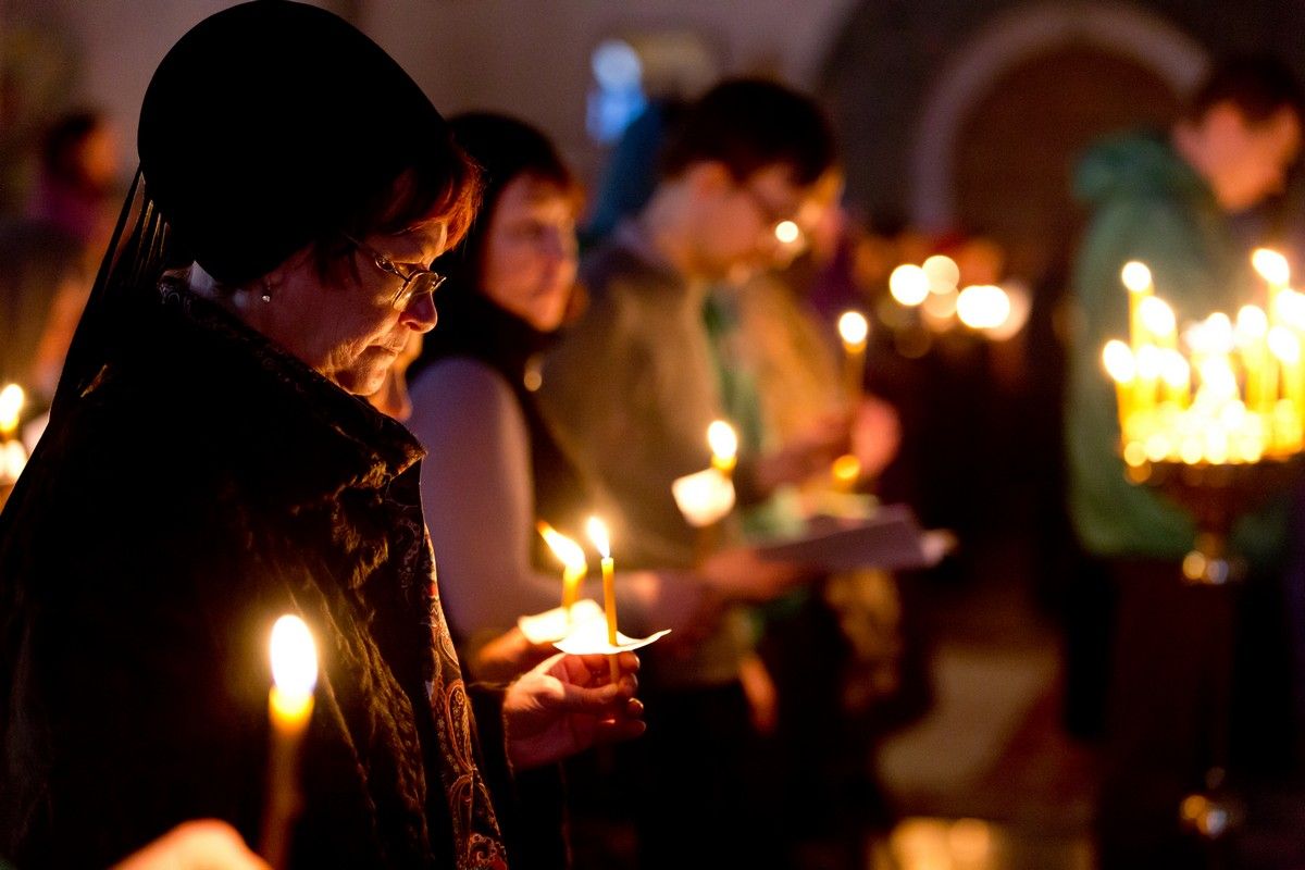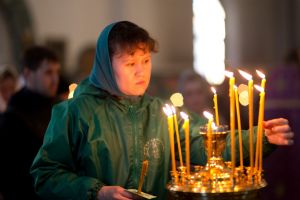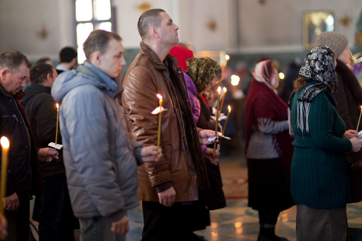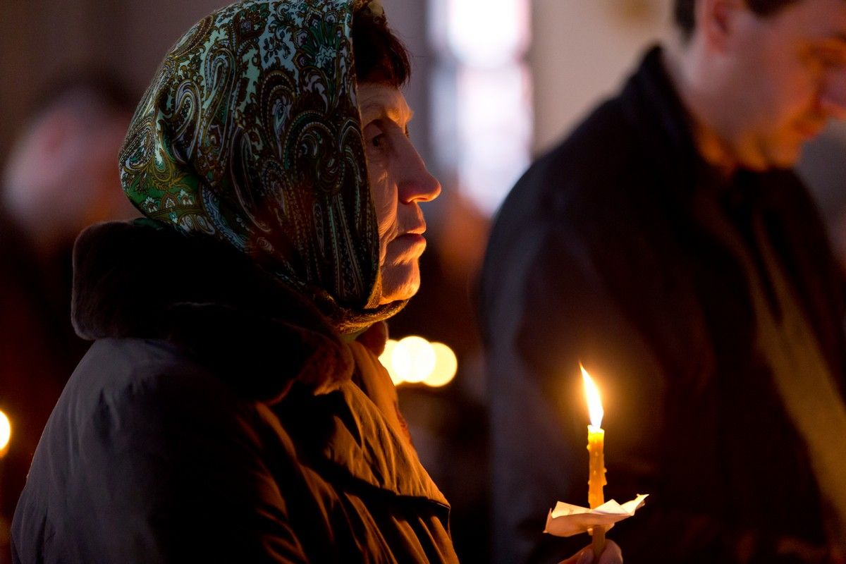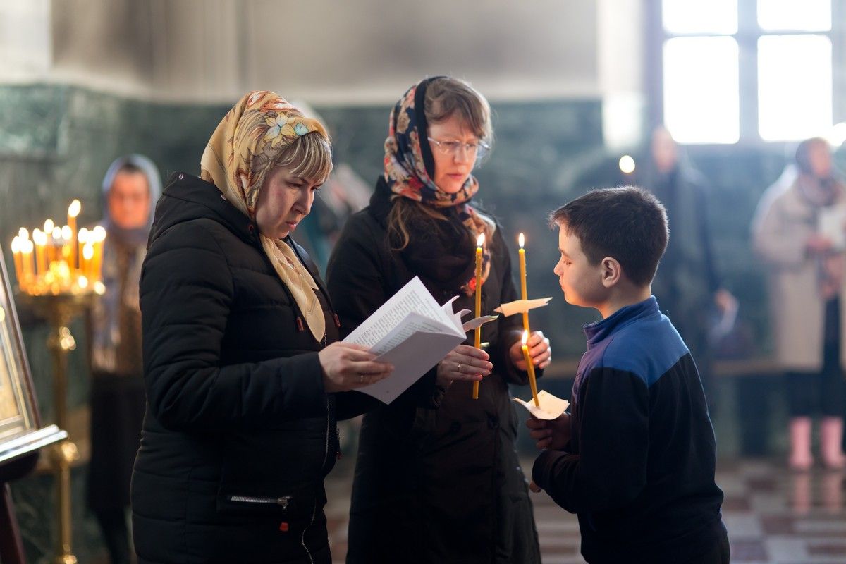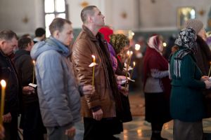 Всем верующим на входе в храм были предложены книжечки с последованием утрени. Со свечами в руках, прихожане по тексту следили за ходом богослужения. Чтобы лучше понять и не пропустить не одного слова из этого скорбного богослужения.