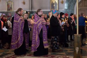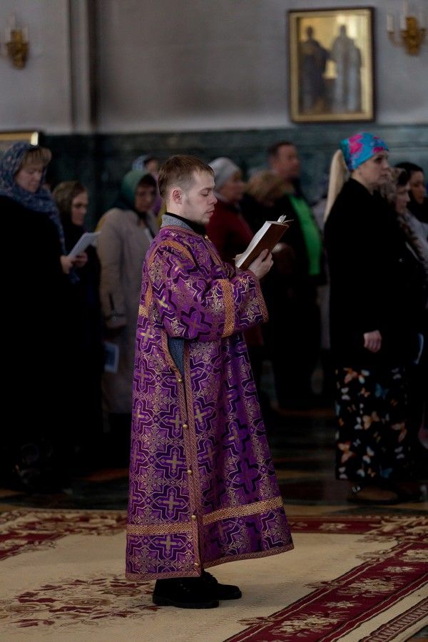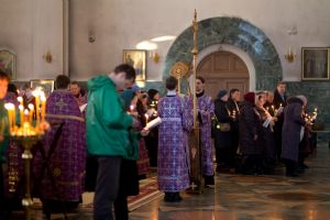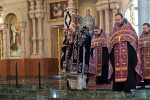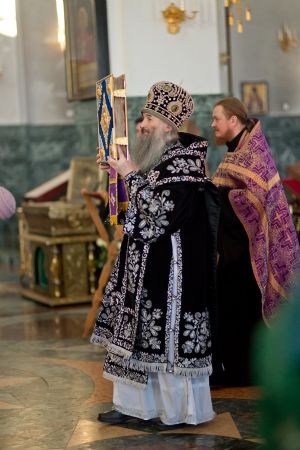 Все богослужение посвящено воспоминанию спасительных страданий и крестной смерти Иисуса Христа. Евангельские отрывки вместе с Владыкой поочередно читали священнослужители, сослужившие ему: секретарь Епархиального управления иеромонах Серафим (Пасанаев), ключарь собора протоиерей Сергий Поглазов, клирики собора иереи Никифор Захаров, Артемий Промович, Евгений Самойлов.