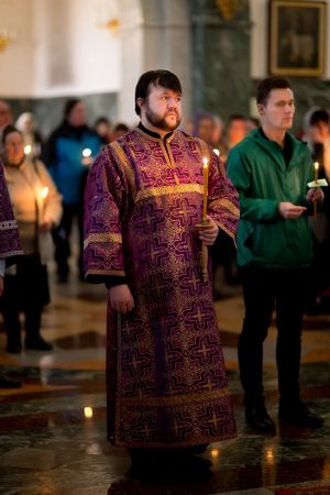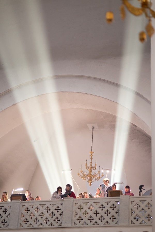 Песнопения исполнил хор храма под руководством регента Татьяны Черновой. Для глухих и слабослышащих ход службы, в том числе и Евангельские отрывки переводились на жестовый язык Михаилом Виногоровым.