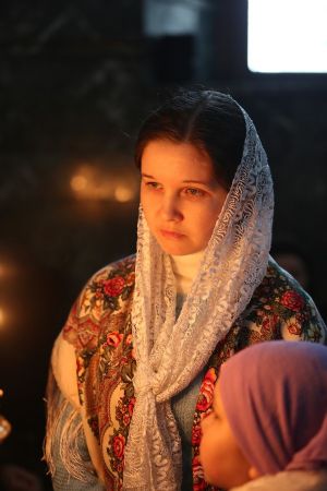 В этом году престольный праздник собора совпал с Великой субботой, поэтому торжественное богослужение было совмещено со скорбным памятованием о распятии и погребении Господа нашего Иисуса Христа.