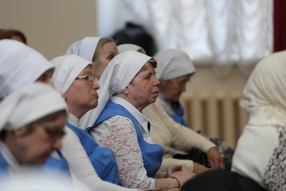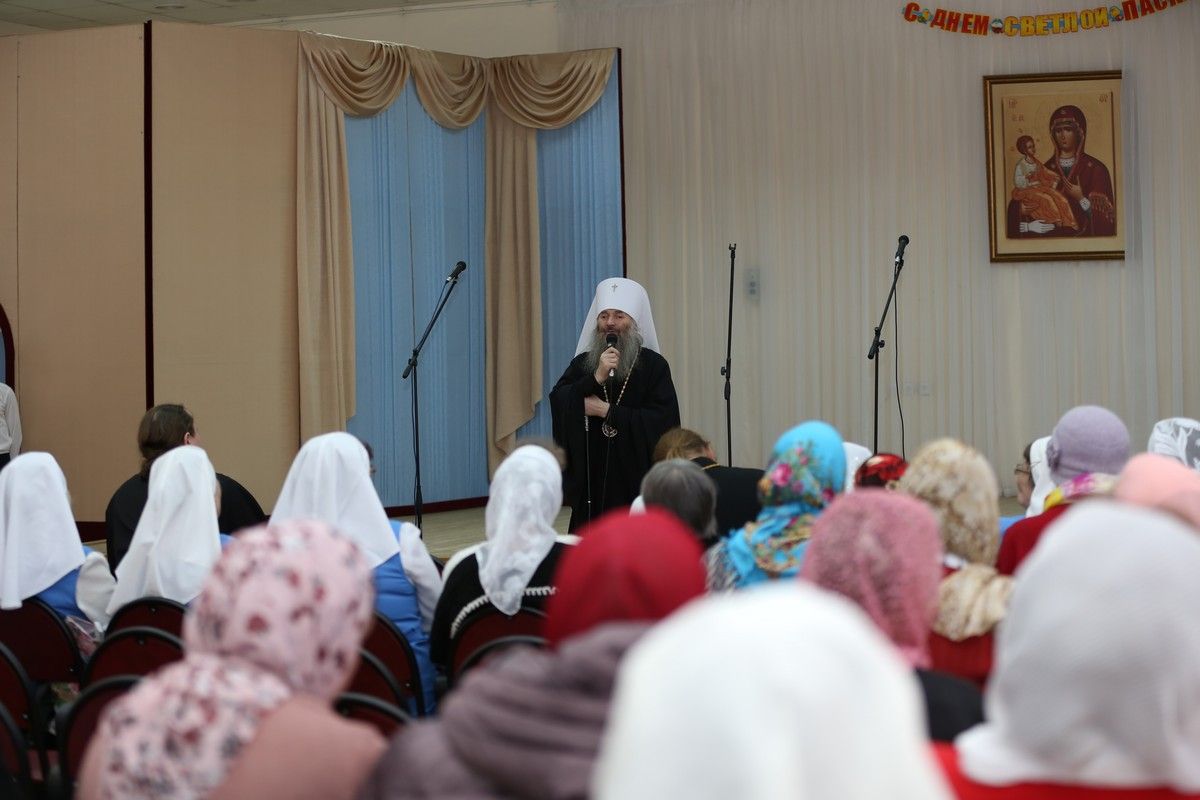 Помолится вместе с архипастырем и разделить с ним пасхальную радость собрались сестры милосердия Йошкар-Олинского сестричества и сотрудники епархиальных отделов.
