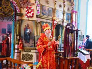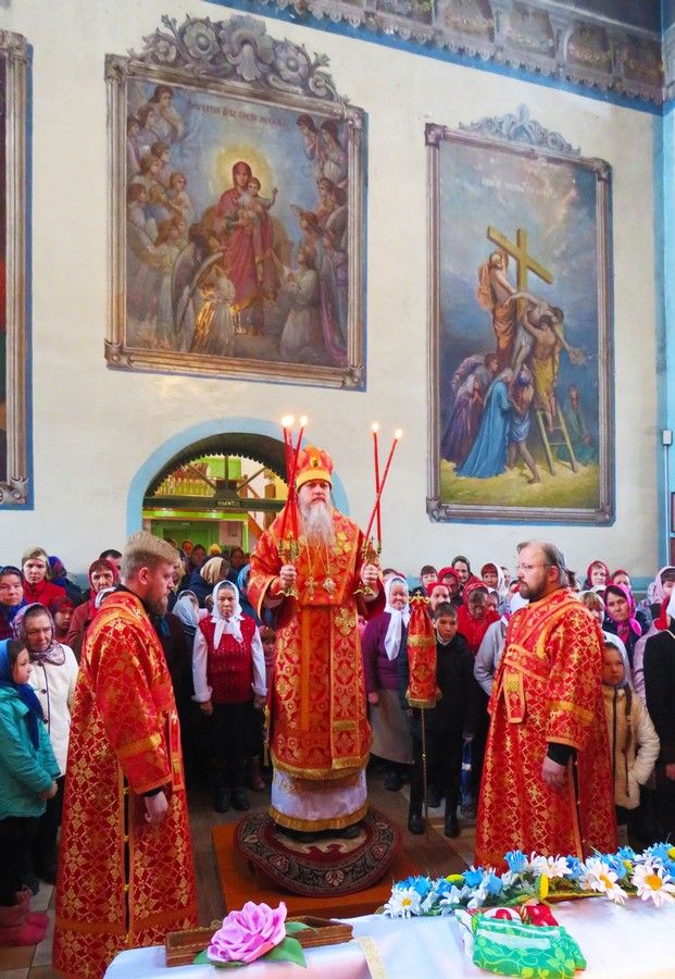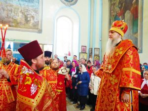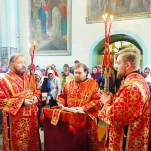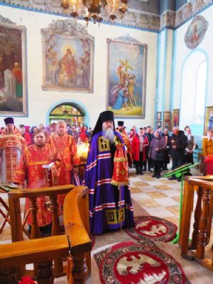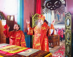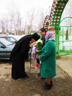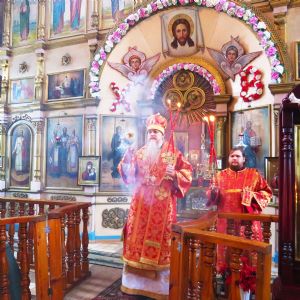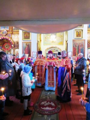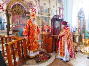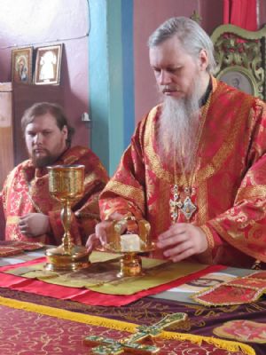 Его Преосвященству сослужили: настоятель храма протоиерей Евгений Багутов, настоятель Свято-Троицкого храма села Помары иерей Сергий Петров, настоятель Свято-Троицкого храма села Сотнур иерей Игорь Сапаев, дьякон Иоанн Захаров.