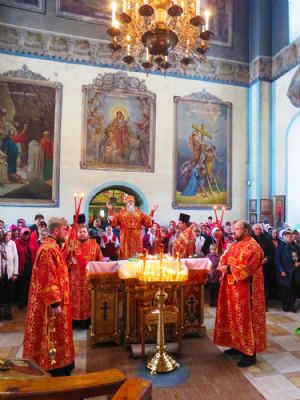 По окончании богослужения епископ Феофан поздравил духовенство и верующих с праздником Святой Пасхи и обратился к собравшимся со словами проповеди, в которой рассказал о празднуемой в этот день иконе Божией Матери «Касперовская», пожелал всем Её Покрова и радости о Воскресшем Господе нашем Иисусе Христе в течение всей жизни. Преосвященнейший Феофан объявил, что Святейший Патриарх Кирилл ко Дню Святой Пасхи наградил протоиерея Евгения Бакутова правом служения Божественной литургии с отверстыми Царскими вратами до Херувимской песни, поздравил от лица собравшихся с этим событием и пожелал ему многая и благая лета, чтобы послужить во славу Божию, во спасение его светлой души и для пользы паствы Христовой.