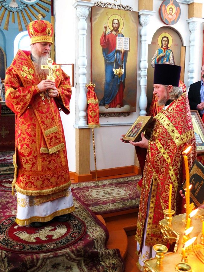 Преосвященнейшему владыке сослужили: настоятель храма протоиерей Леонтий Очетов, настоятель храма Рождества Христова села Арино протоиерей Николай Чузаев, настоятель храма иконы Божией Матери «Казанская» иерей Евгений Шамаев, диакон Иоанн Захаров.