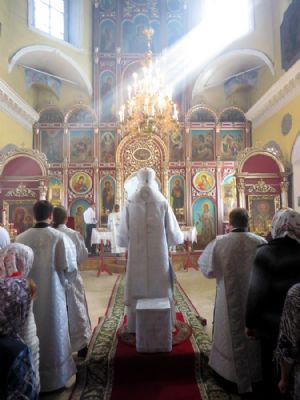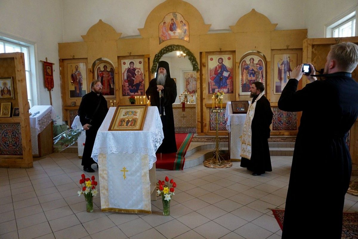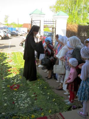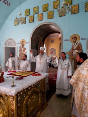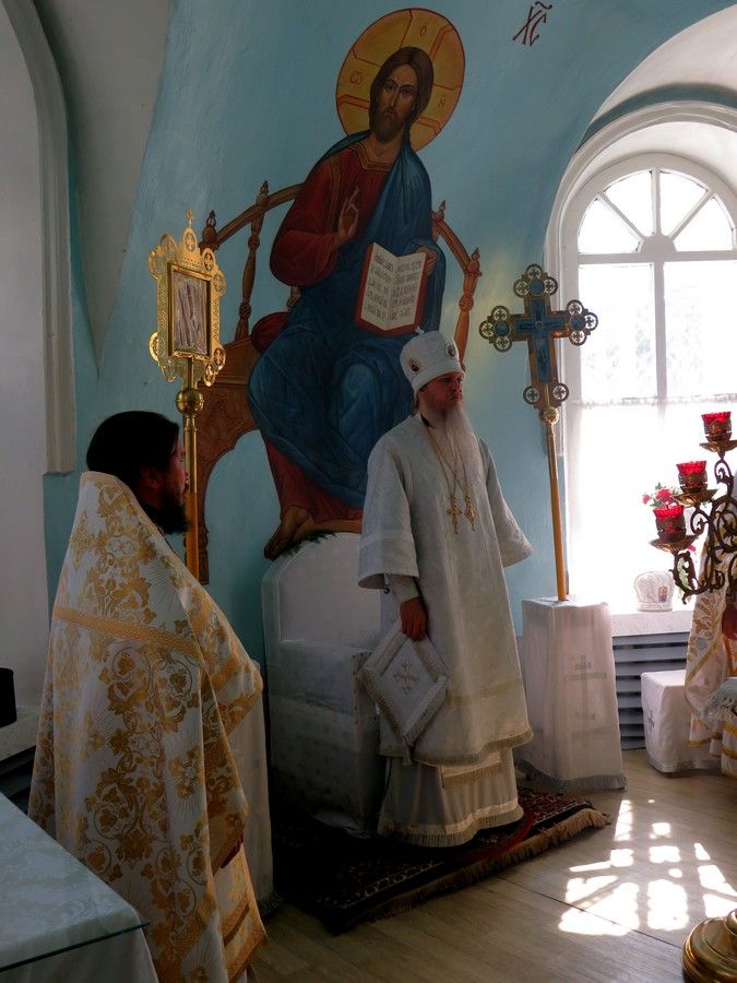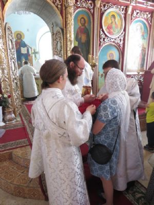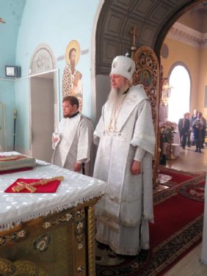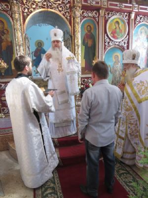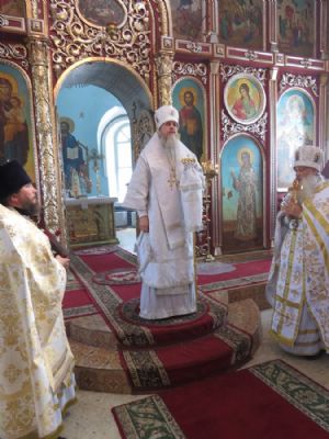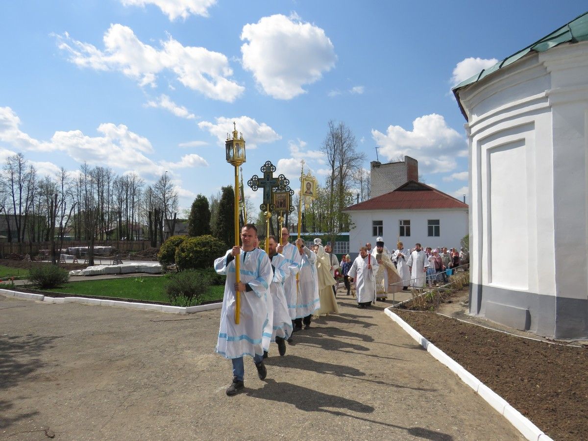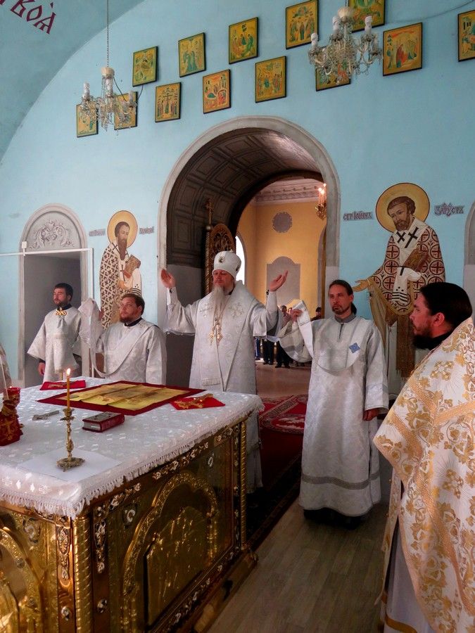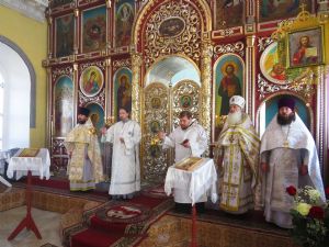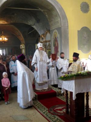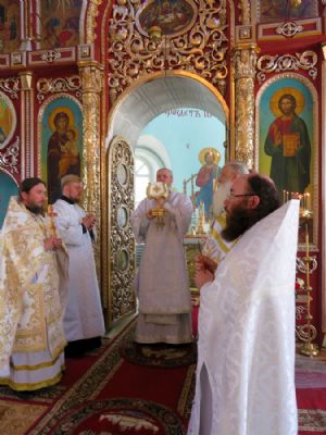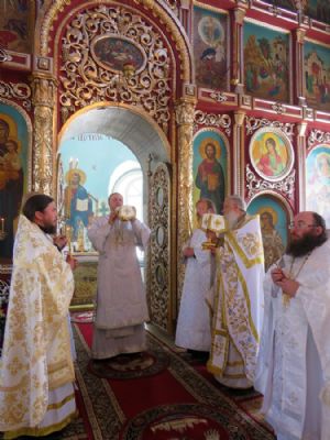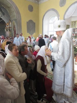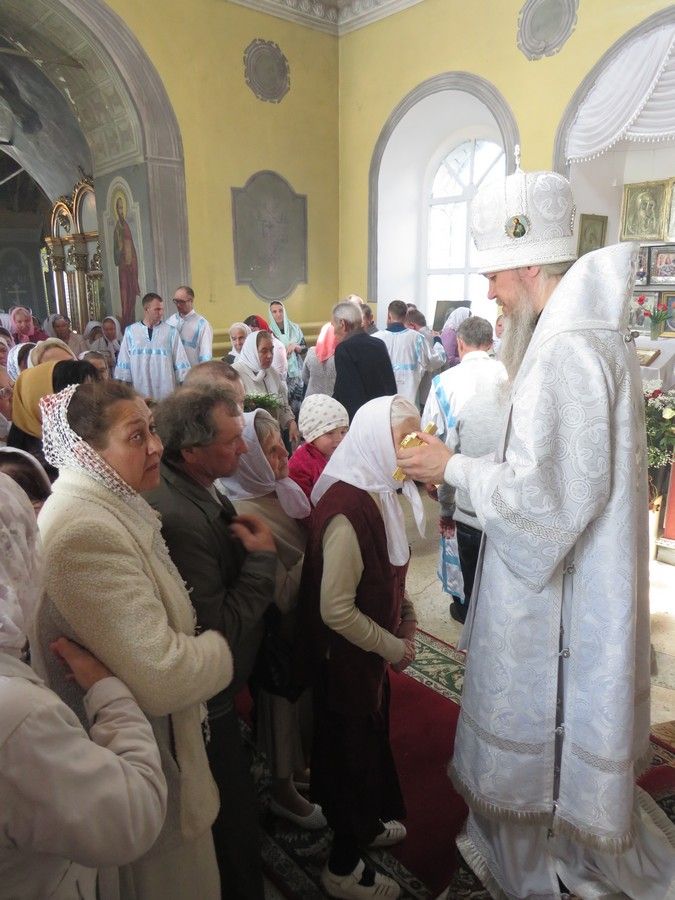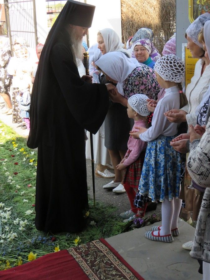 По окончании Литургии духовенство и верующие совершили крестный ход. Затем владыка Феофан поздравил собравшихся с престольным праздником и призвал с верой просить у Господа даровать сердцам нашим любовь к Богу и ближнему, ибо две главные заповеди заключаются именно в этом: «Если мы любовь к Богу и к ближнему поставим на первое место, то все остальное приложится нам. Если же на первое место поставить земную выгоду и корысть, то наша жизнь будет бессмысленна, мы будем жестокосердными. Мы должны любить и молиться друг за друга, чтобы Бог укрепил нас и помог нам пройти тернистый путь этой жизни и наследовать жизнь вечную, к которой призывает нас Вознесшийся ныне Господь наш Иисус Христос».
