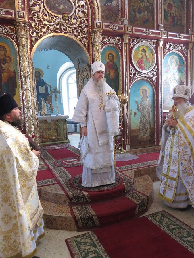 Епископу Феофану сослужили настоятель Вознесенского храма протоиерей Вячеслав Ершов, настоятель храма преподобномученика Андрея Критского с. Елембаево протоиерей Сергий Бажанов, настоятель храма Рождества Христова с. Пектубаево иерей Сергий Целищев, диакон Вознесенского храма Андрей Березин и диакон Никольского кафедрального собора г. Волжска Иоанн Захаров.