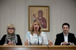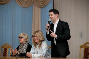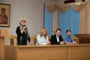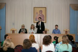 После посещения «Добрых зернышек» в актовом зале Православного центра Антон и Виктория Макарские пообщались с представителями средств массовой информации и сотрудниками Православного центра, рассказали о своем творчестве, семейных отношениях и воспитании детей, ответили на вопросы журналистов о своем пути к вере и Богу.
