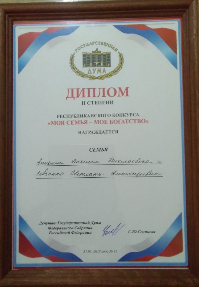 Дипломом II степени награждена семья Аникиных-Левченко-Золотковых (г.Йошкар-Ола).