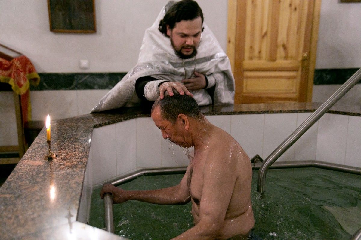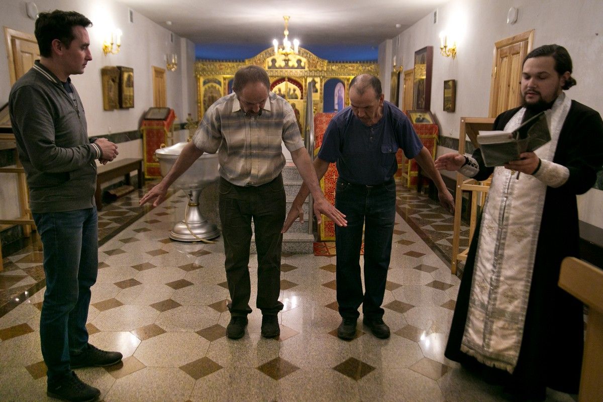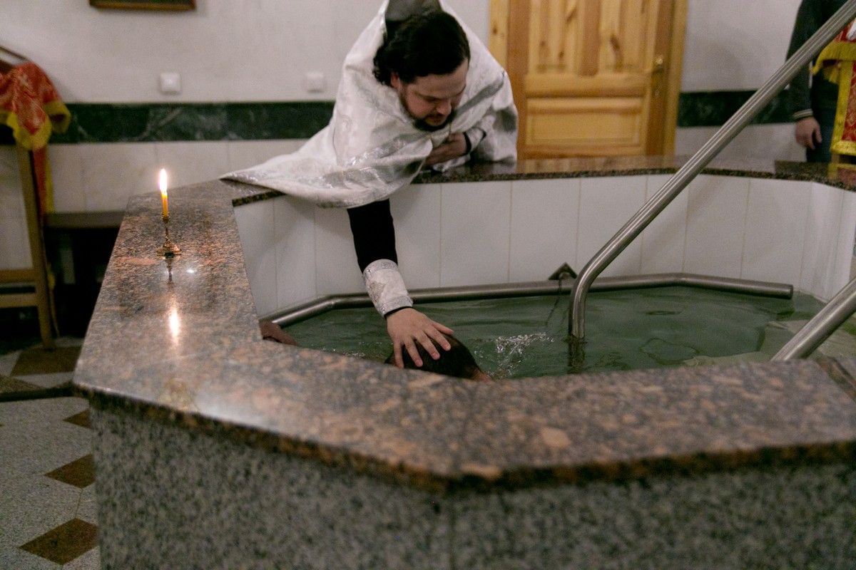 Оглашенные, Виталий и Федор, сами на языке жестов показывали, что отрекаются от дьявола и сочетаваются со Христом. Священник на жестовом языке читал Евангелие, разъяснял все происходящее, для чего в процессе крещения делались паузы.