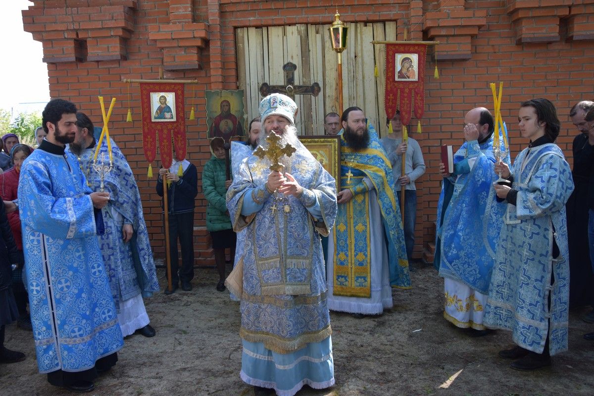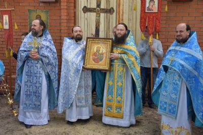 После Литургии священнослужители и миряне прошли крестным ходом вокруг строящегося храма в честь иконы Божией Матери «Споручница грешных». Строительство этого храма началось в мае 2016 года.
