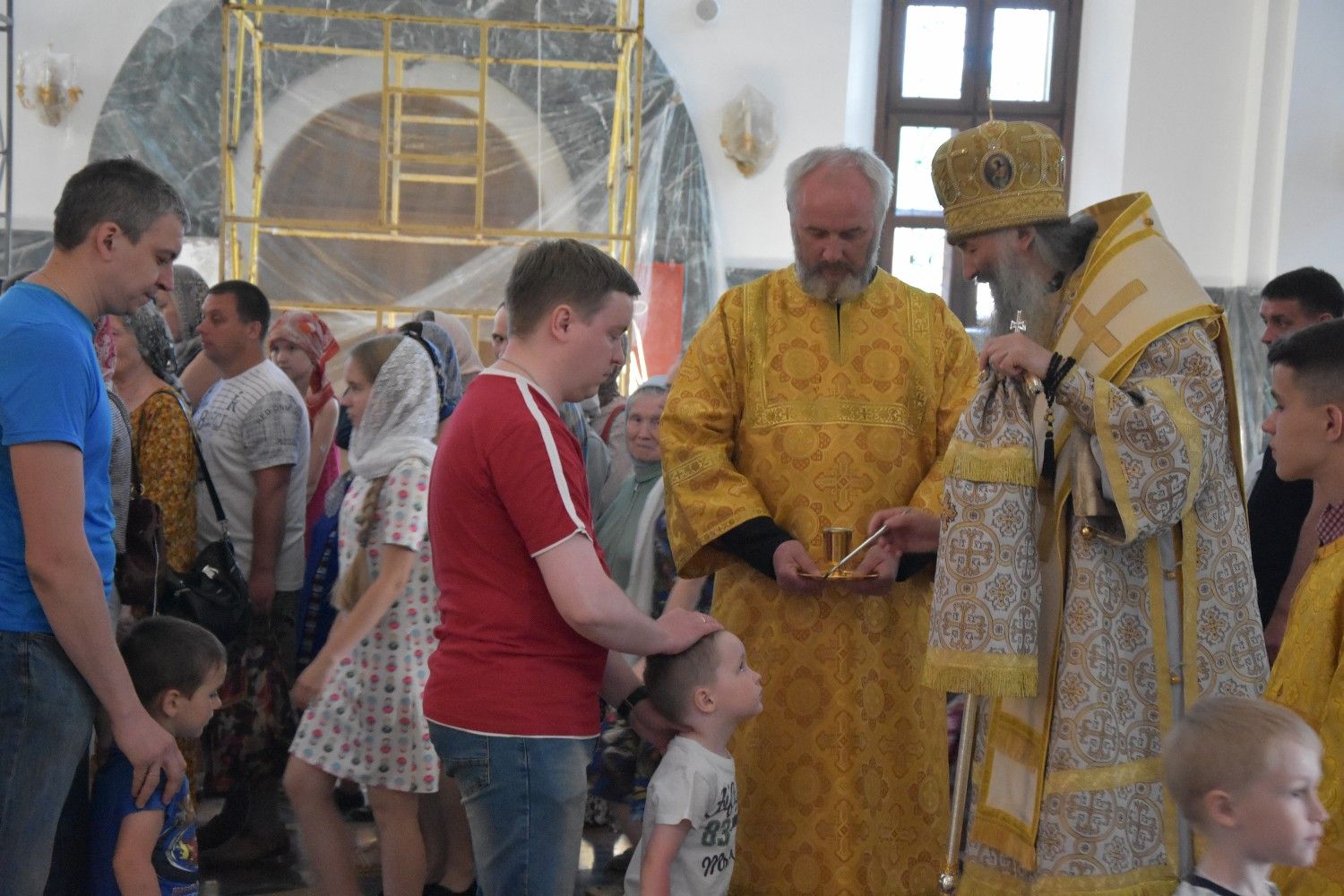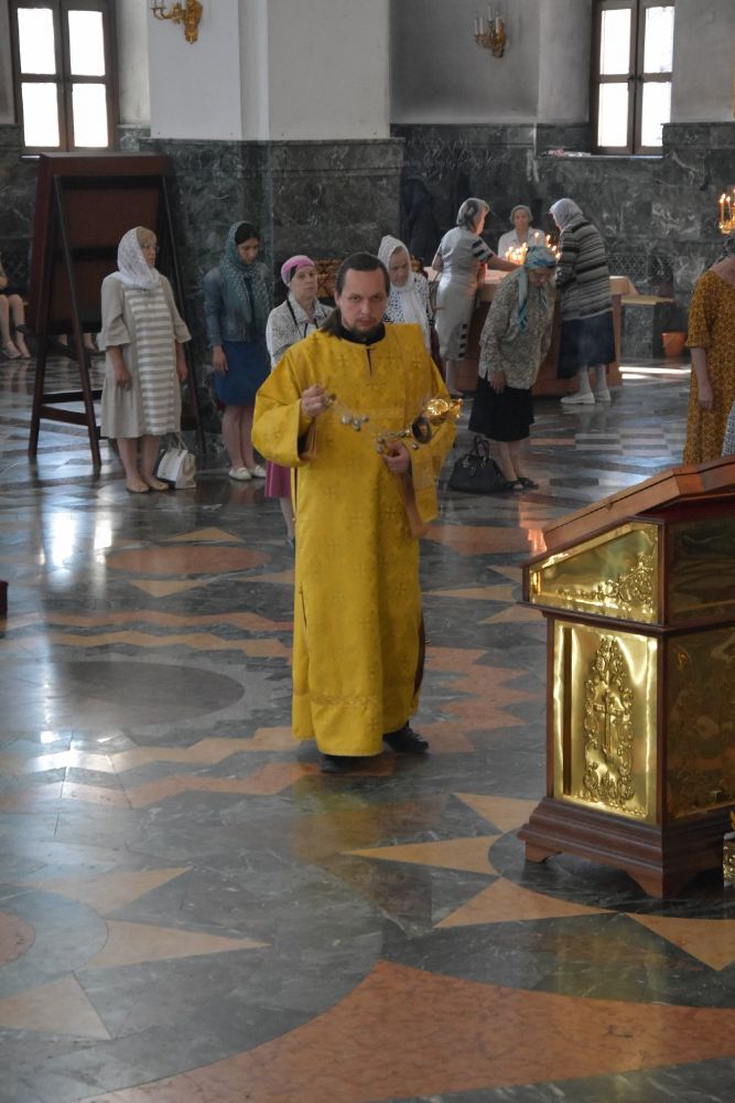 За богослужением песнопения исполняли старшая и младшая группы детско-юношеского хора «Благовест» под руководством регентов Татьяны Черновой и Надежды Поздеевой. Читались отрывки из послания апостола Павла Римлянам (6 глава) об освобождении от греха, из Деяний Апостолов (11 глава) о служении апостола Варнавы, из послания апостола Павла Филиппийцам (2 глава) о смирении и воплощении Сына Божия, из Евангелия от Матфея (8 глава) о исцелении слуги сотника, из Евангелия от Луки (10 глава) о послании 70 апостолов на проповедь и о ублажении слушающих слово Божие и Матери Божией.
