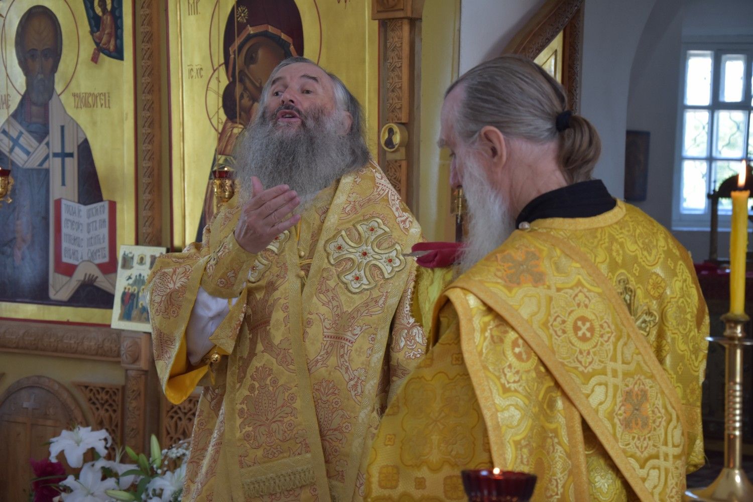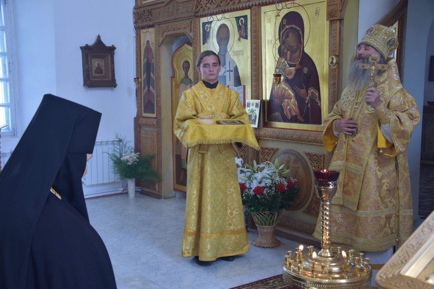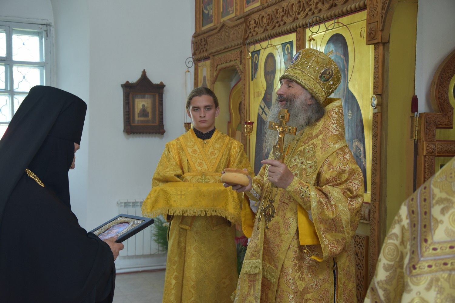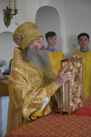 В проповеди Владыка рассказал об особом покровительстве Божией Матери всем монашествующим. После Божественной литургии митрополит Иоанн поздравил игумению Варнаву с днем тезоименитства, подарил икону Божией Матери, привезенную с Афона, и богородичную просфору.
