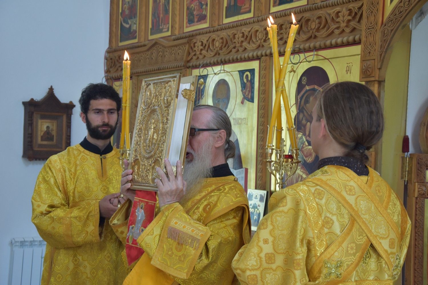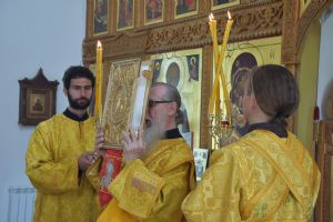 Песнопения за богослужением исполнял детско-юношеский хор «Благовест» под руководством регента Татьяны Черновой. Читался отрывок из Евангелия от Луки (24 глава) о явлении двух ангелов женам мироносицам.