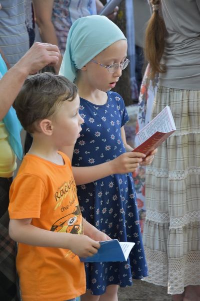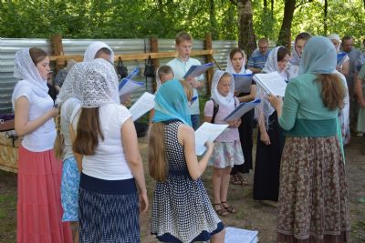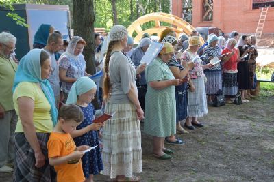 Богослужебные песнопения исполнил хор «Благовест» под управлением регента Татьяны Черновой. Акафист Божией Матери вместе со священнослужителями и хором пели все собравшиеся на совместную молитву. После молебна Владыка покропил территорию строящегося храма и всех молящихся святой водой.