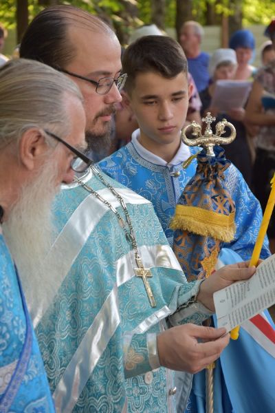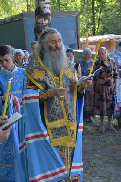 Владыке сослужили клирик храма Успения Пресвятой Богородицы города Йошкар-Олы иерей Алексий Михеев и клирик храма Рождества Пресвятой Богородицы села Семеновка протодиакон Михаил Козловский.