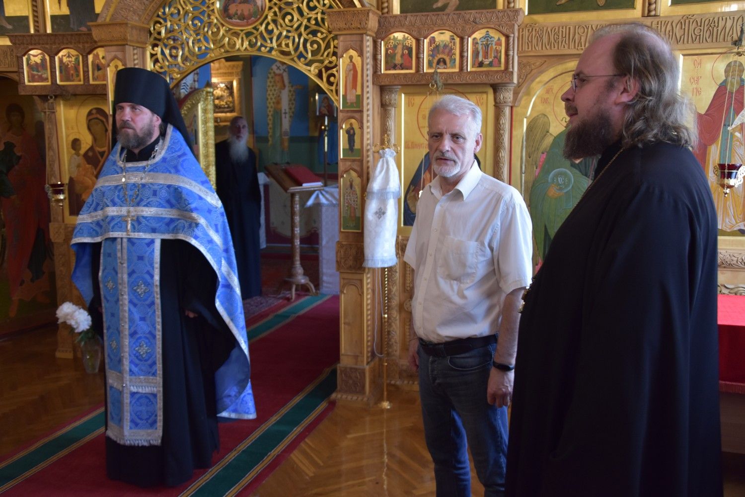 Иеромонаху Серафиму сослужили директор гимназии и настоятель домового храма Поволжского Государственного Технологического Университета мученицы Татианы протоиерей Евгений Сурков и клирик храма Рождества Пресвятой Богородицы села Семеновка протодиакон Михаил Козловский.