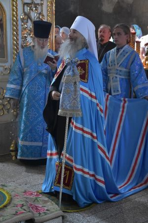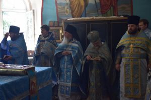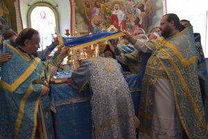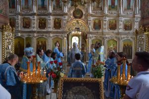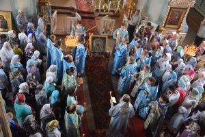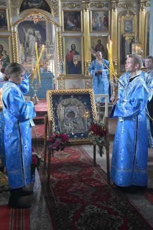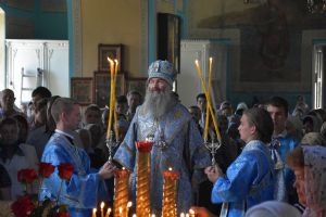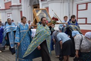 После Божественной литургии иконой Владимирскую икону Божией Матери крестным ходом перенесли в Смоленский собор. Здесь был совершен молебен с пением акафиста Божией Матери перед ее образом «Владимирская». Сослужили Владыке настоятель храма иерей Алексий Евсеев и клирики Горномарийского благочиния.