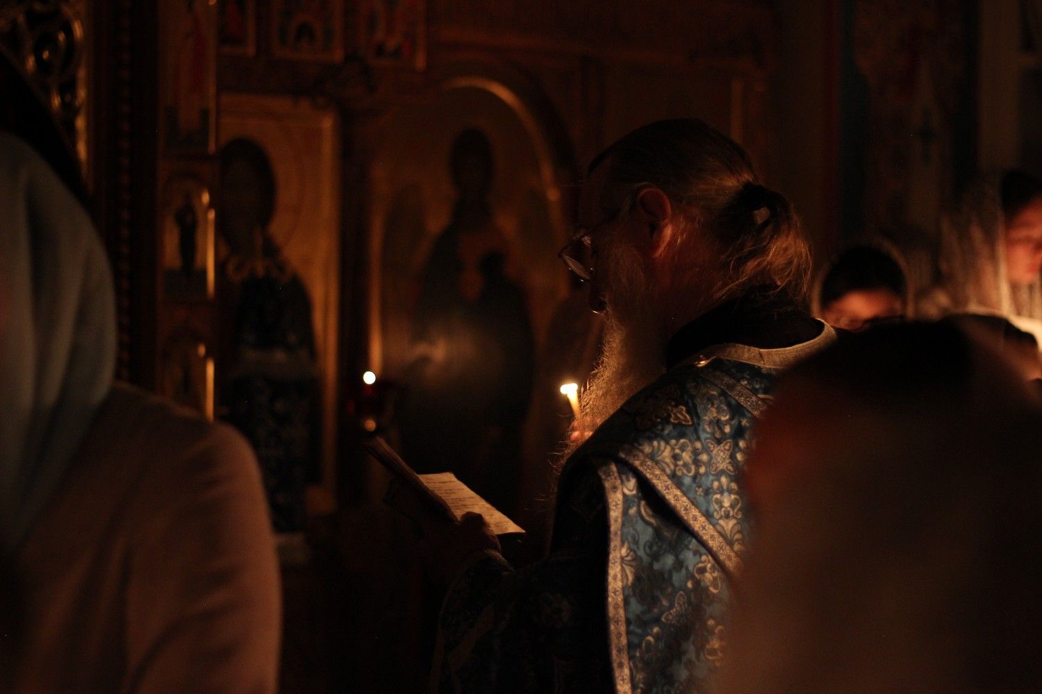 В 21.30 здесь же началось особое богослужение – Всенощное бдение по афонскому уставу. Маленький домовой храм в Марийском крае молитвенно и духовно соединяется со Святой горой Афон, где в Хиландарском монастыре так же идет Всенощное бдение в честь иконы Божией Матери «Троеручица».