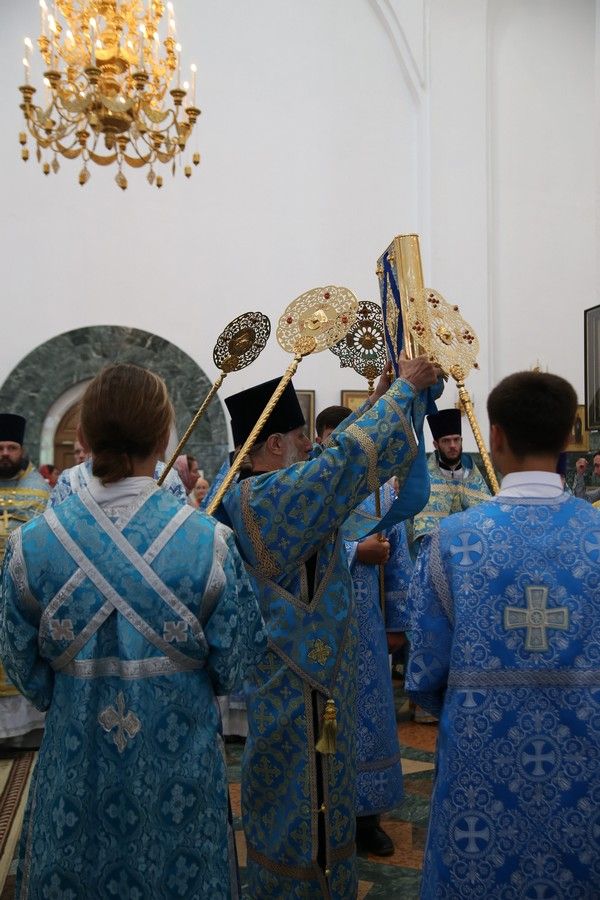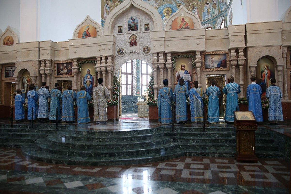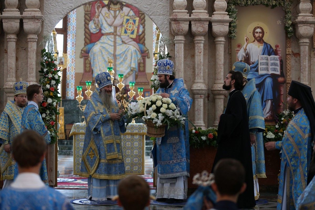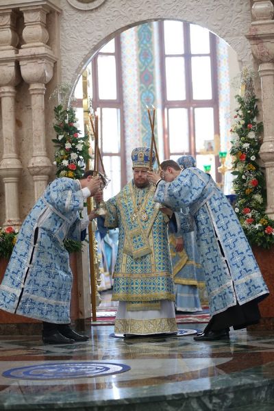 За Литургией архипастырям сослужили секретарь Епархиального управления иеромонах Серафим (Пасанаев), ключарь кафедрального собора Благовещения Пресвятой Богородицы протоиерей Сергий Поглазов, благочинные округов Йошкар-Олинской епархии, руководители епархиальных отделов и гости из других епархий.