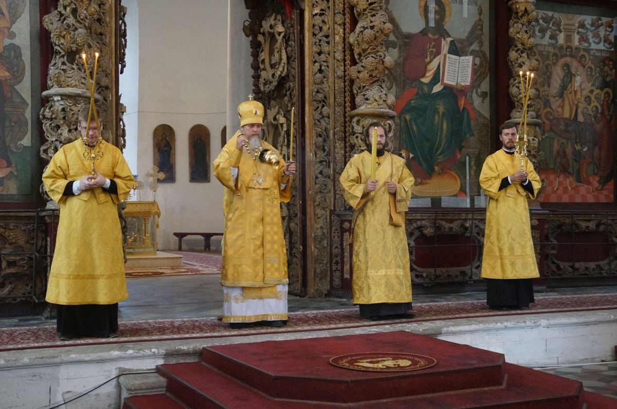 Вечером накануне Недели 10-й по Пятидесятнице епископ Волжский и Сернурский Феофан совершил вечернее богослужение в Успенском кафедральном соборе Рязани.