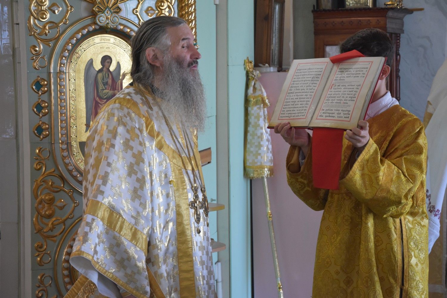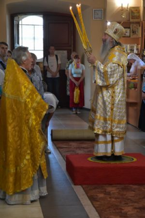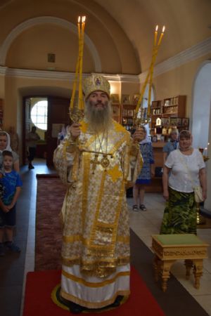 12 августа в воскресенье митрополит Йошкар-Олинский и Марийский Иоанн возглавил Божественную литургию в храме Архангела Михаила поселка городского типа Юрино.