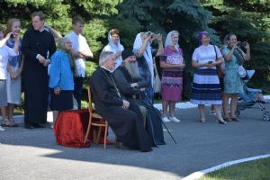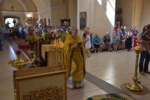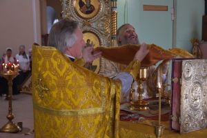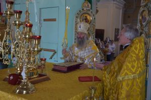 Владыке сослужили настоятель храма протоиерей Николай Барсуков и клирик храма Рождества Пресвятой Богородицы села Семеновка протодиакон Михаил Козловский.