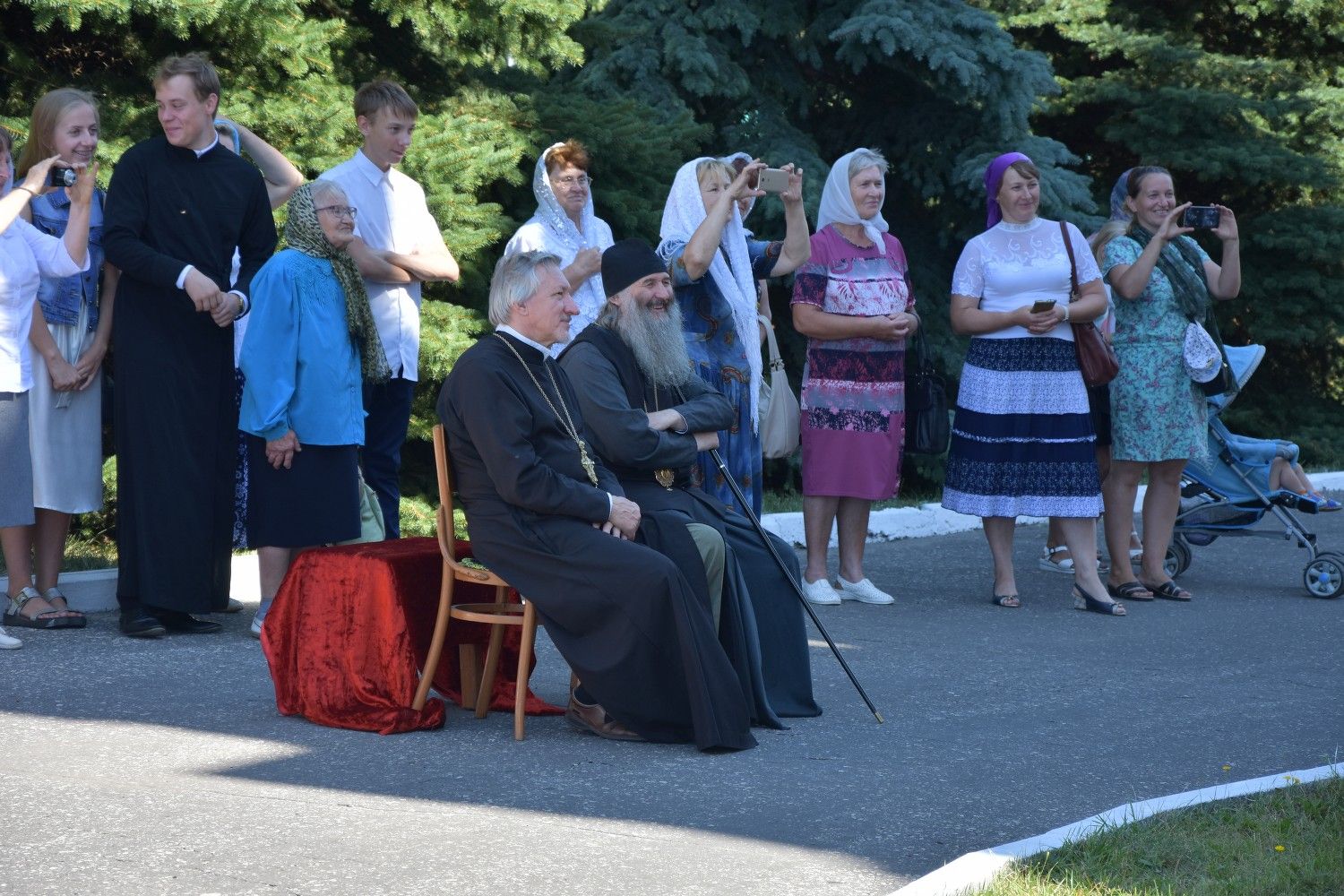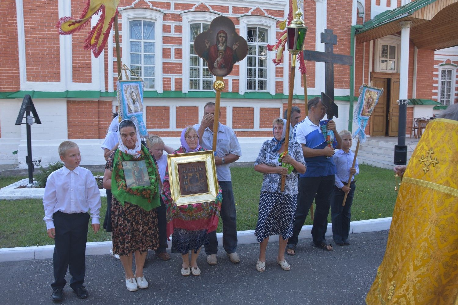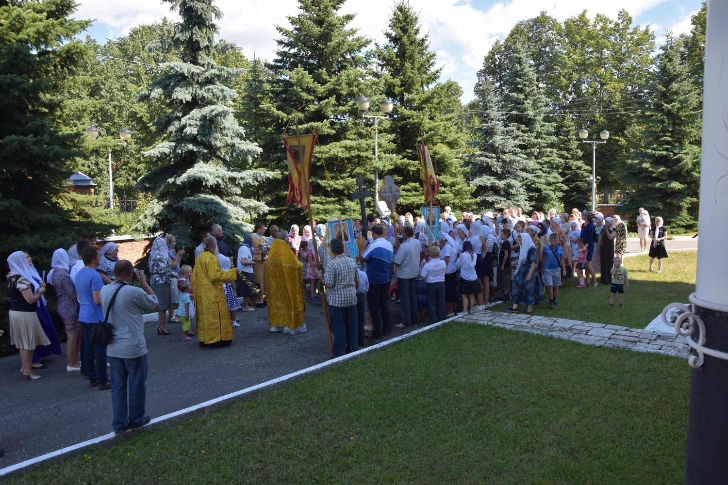 После литургии прошел крестный ход вокруг храма с кроплением святой водой и чтением Евангелия.