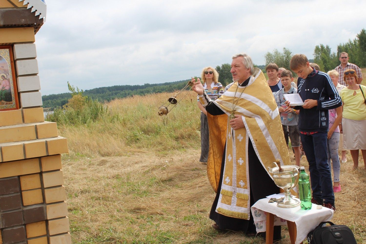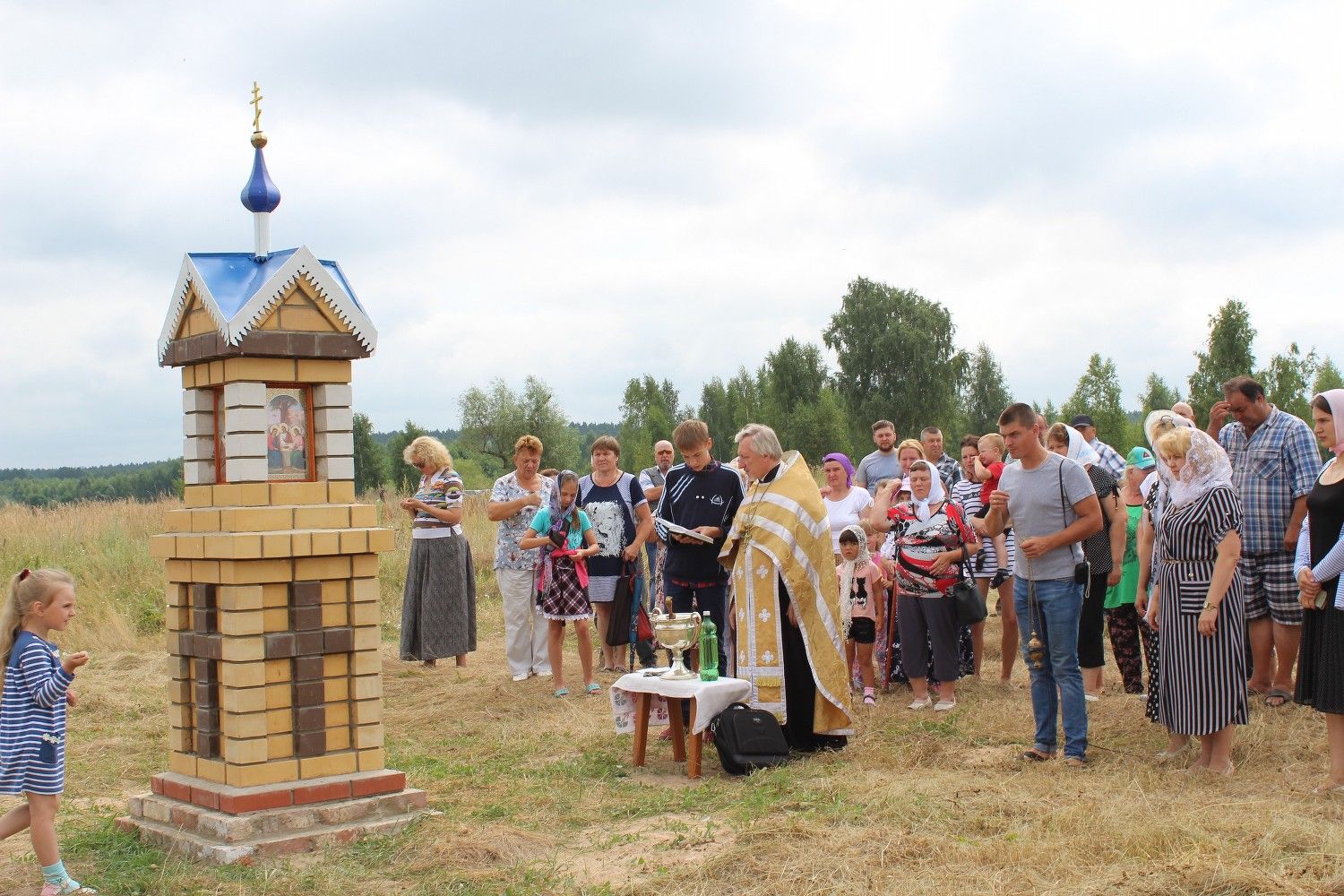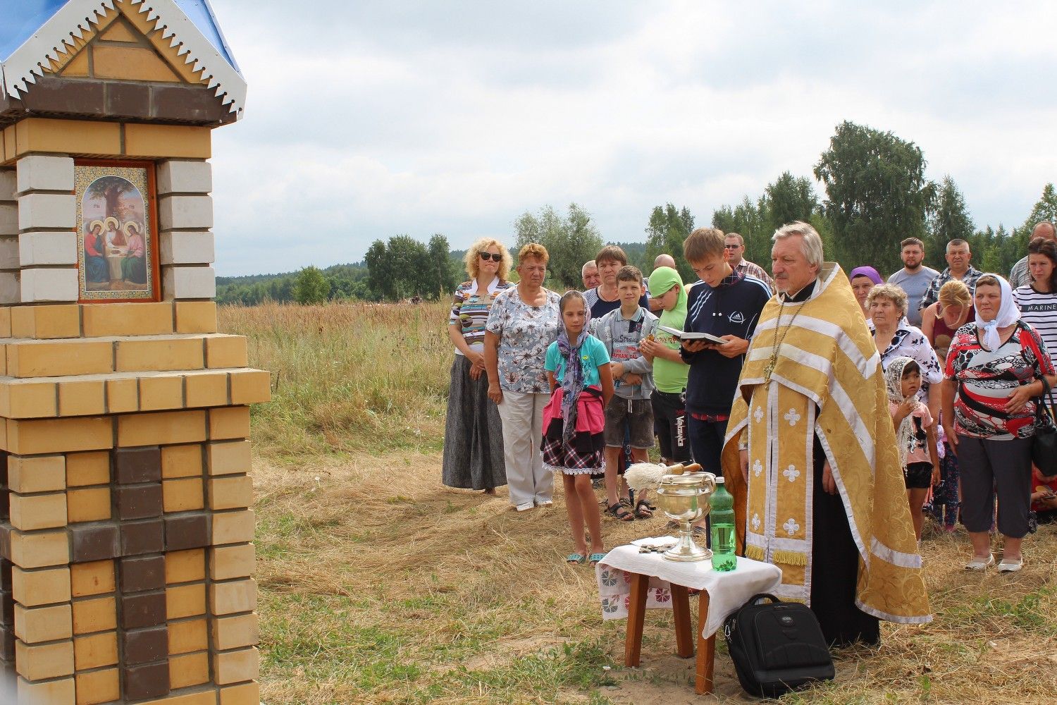 4 числа, в первый субботний день августа, для бывших жителей снесенной деревни состоялось знаменательное событие. После Божественной Литургии к возведенной каменной столбовой часовне прибыл протоиерей Николай с церковным хором и служащими Юринского храма. К этому времени на месте родной деревни собрались и ее бывшие жители.