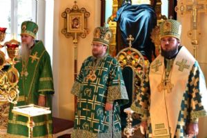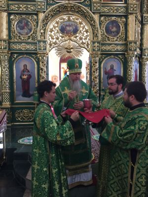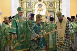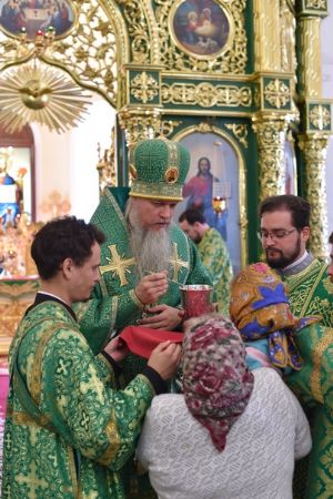 Божественную литургию возглавили епископ Яранский и Лузский Паисий, епископ Уржумский и Омутнинский Фома, епископ Волжский и Сернурский Феофан.