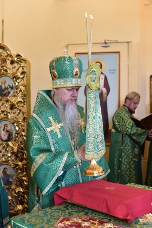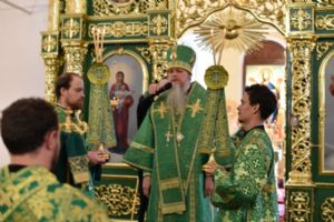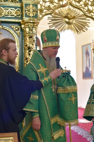 Владыка Паисий поприветствовал собратьев архипастырей и поздравил всех участников богослужения с днем памяти Яранского заступника.