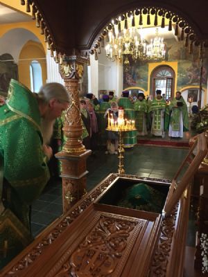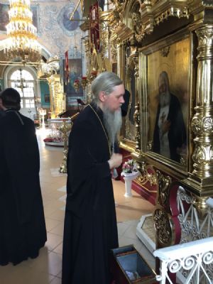 По завершении литургии было совершено славление преподобному Матфею. После молитвы, которую прочел епископ Фома, архипастыри и духовенство приложились к мощам угодника Божия.